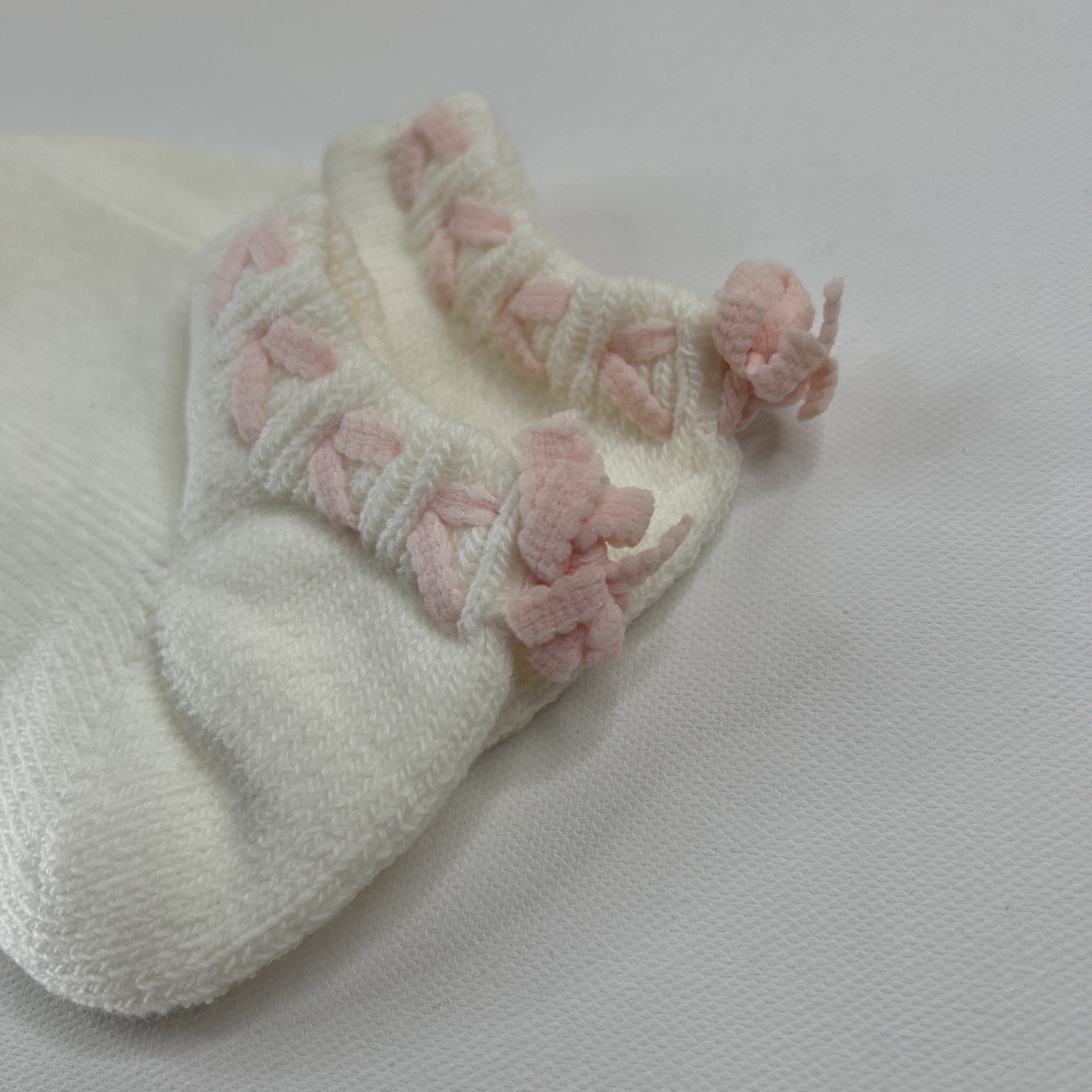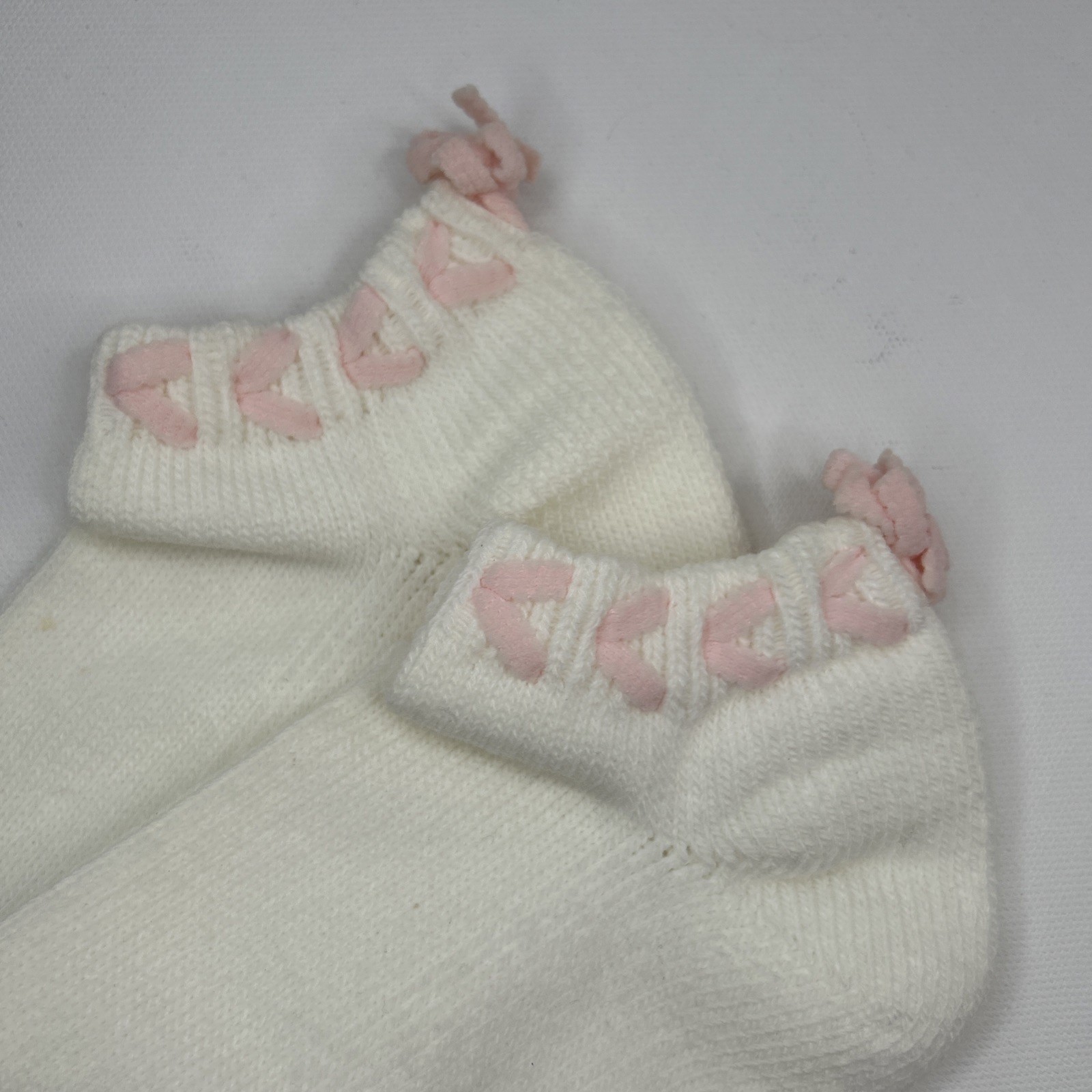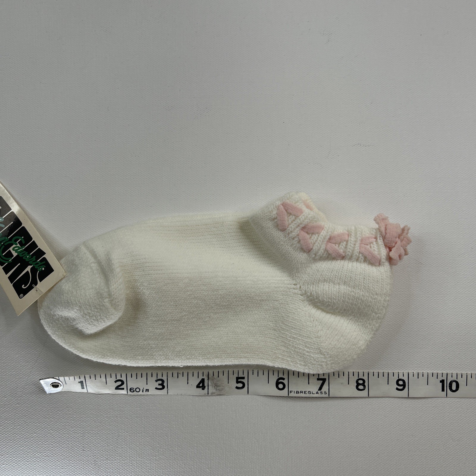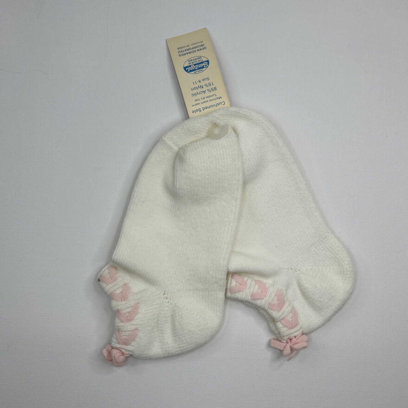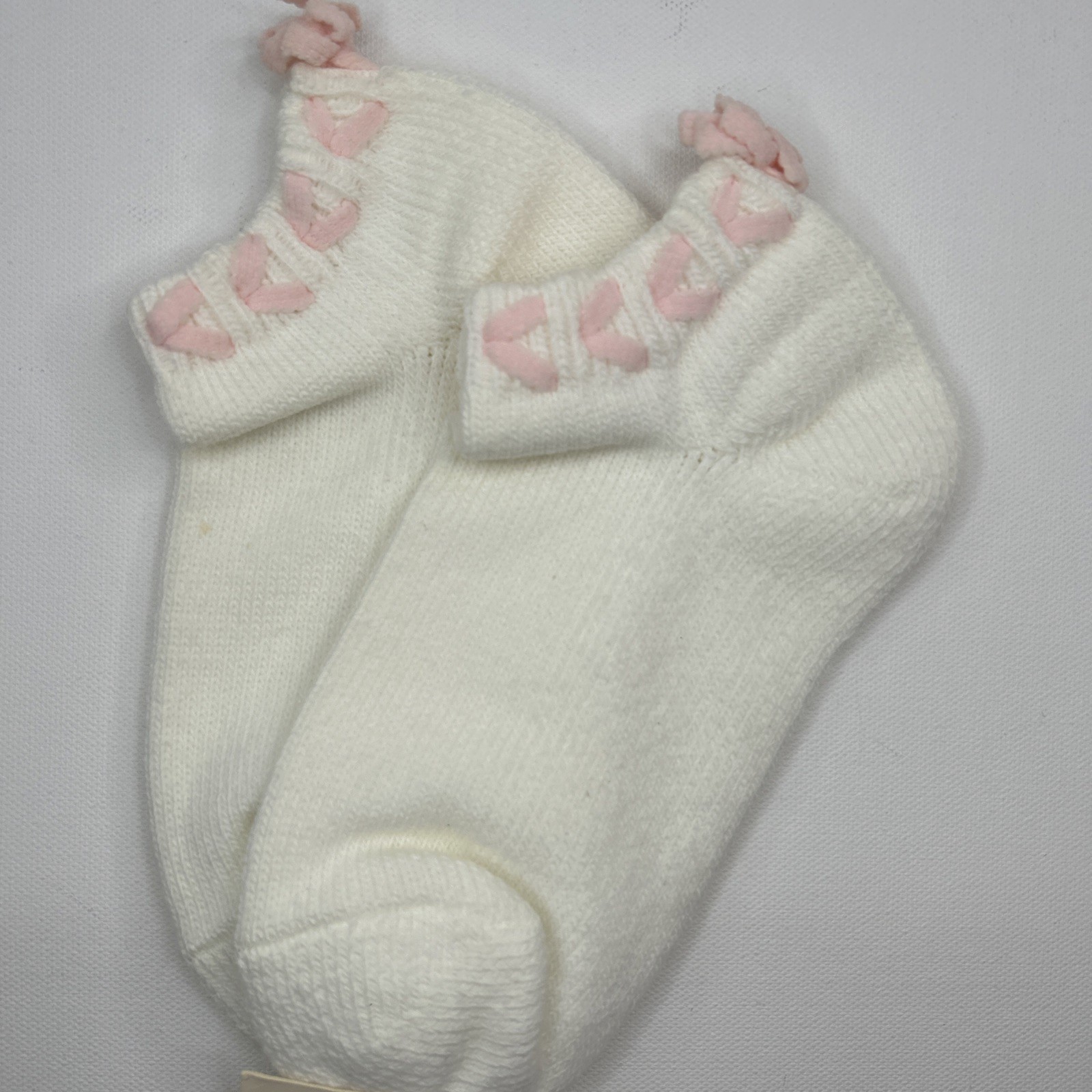 VTG Gean Edwards Socks New Acrylic White Pink Bow Low Ankle 9-11 90s 80's USA