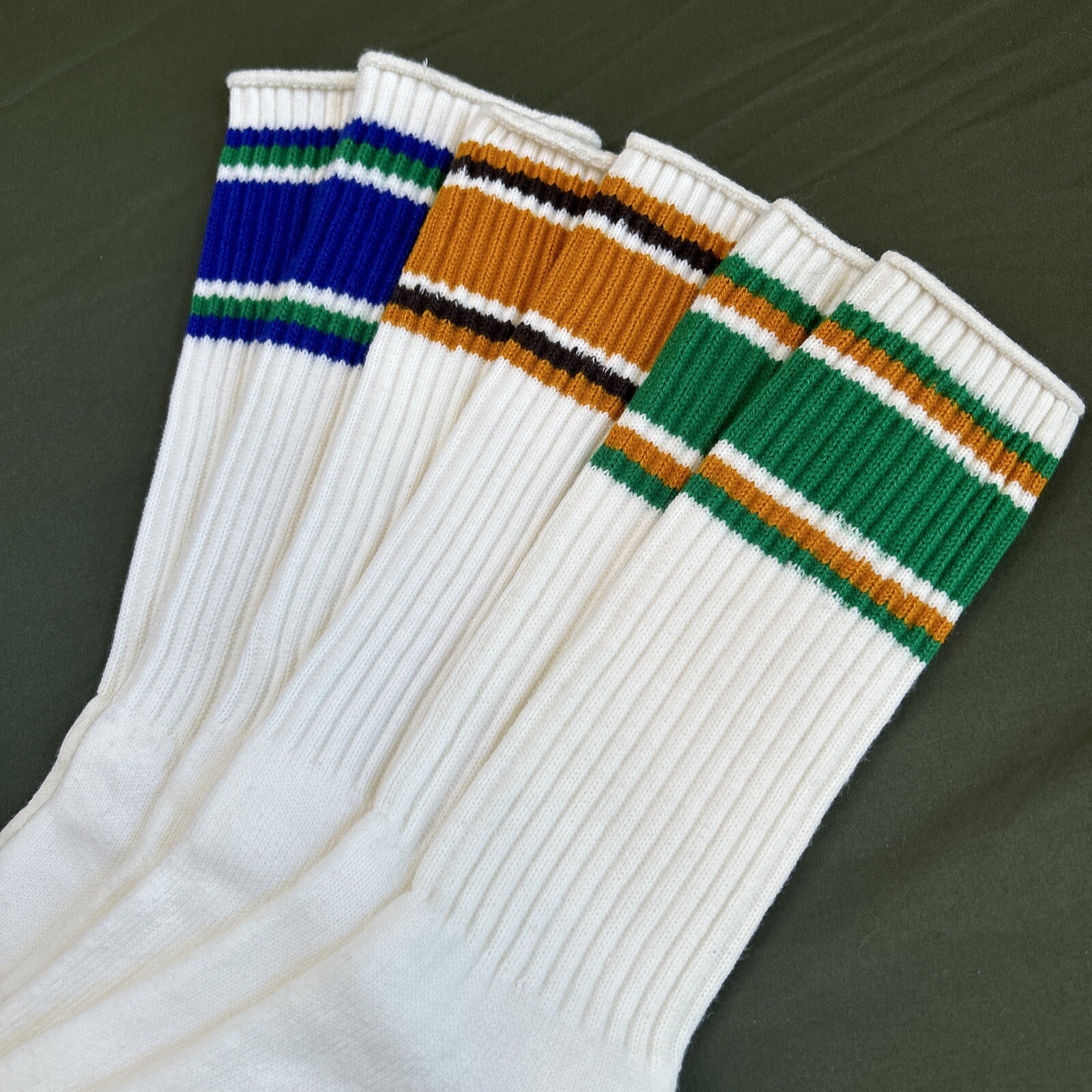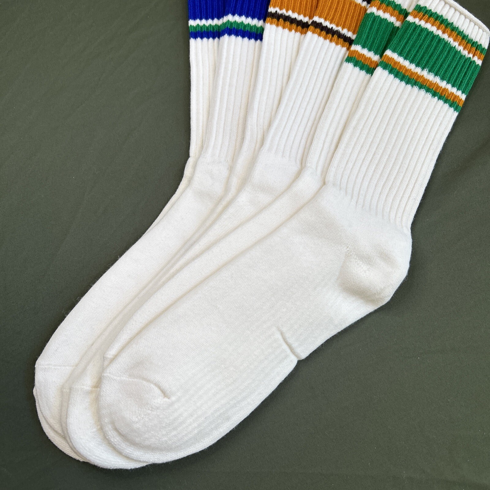 VTG Socks 3 Pack NOS Crew 10-13 Striped Sports 80's 90s Cotton Acrylic USA Lot