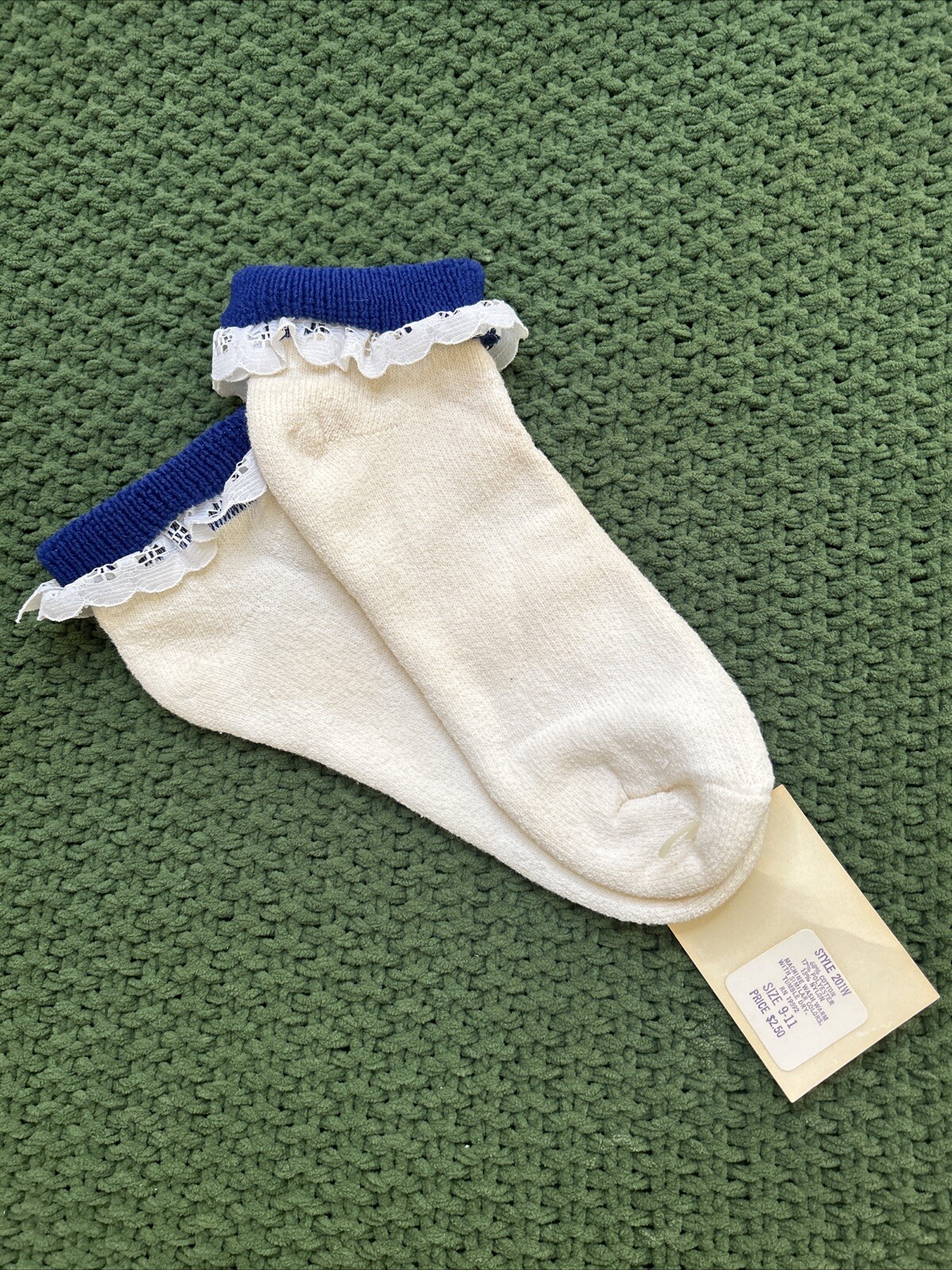 VTG Women's Lace Socks NOS Roll Top 9-11 Springfoot Springers Low Cut Blue 80s