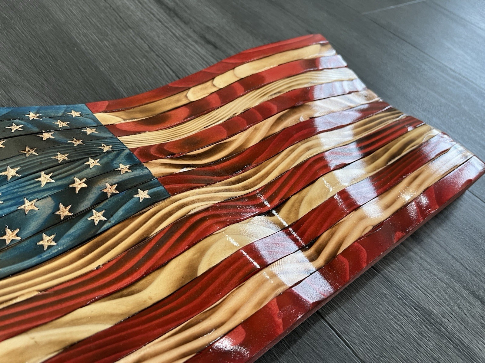 17 x9 Hand Carved Rustic Wood Flag