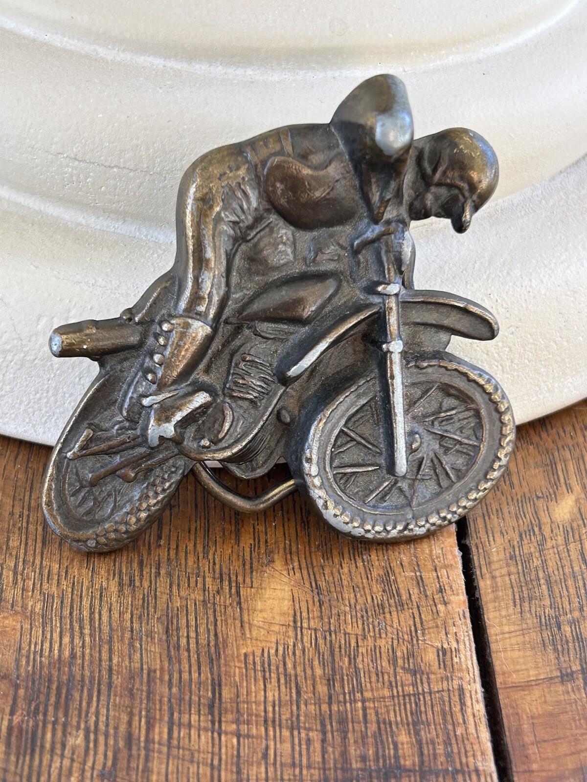 Vintage Belt Buckle Dirt Bike Brass Metal Numbered Motorcycle Motocross