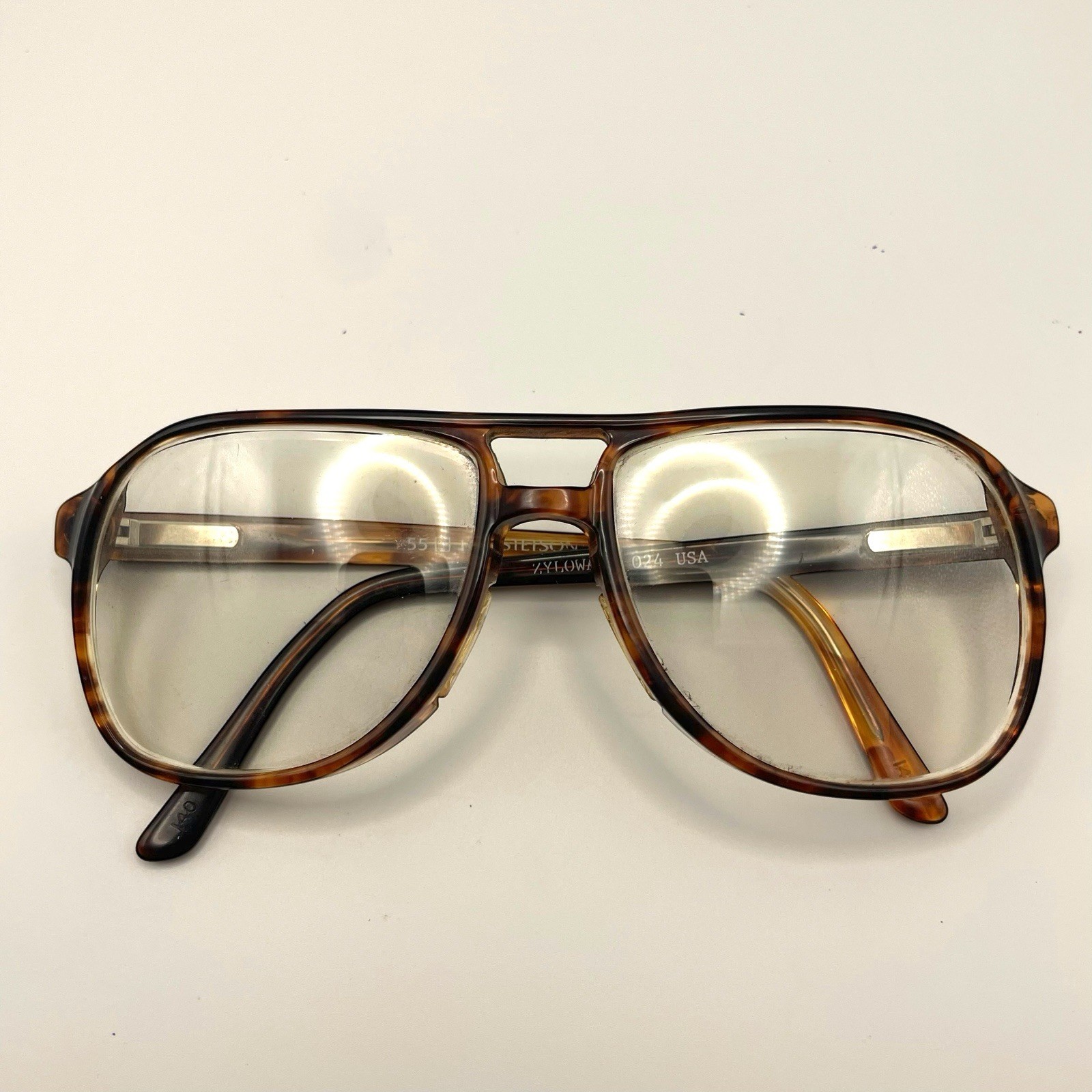 Vtg STETSON 55 16 ZYLOWARE 024 Eyeglass FRAMES ONLY Brown Tortoise Aviator USA