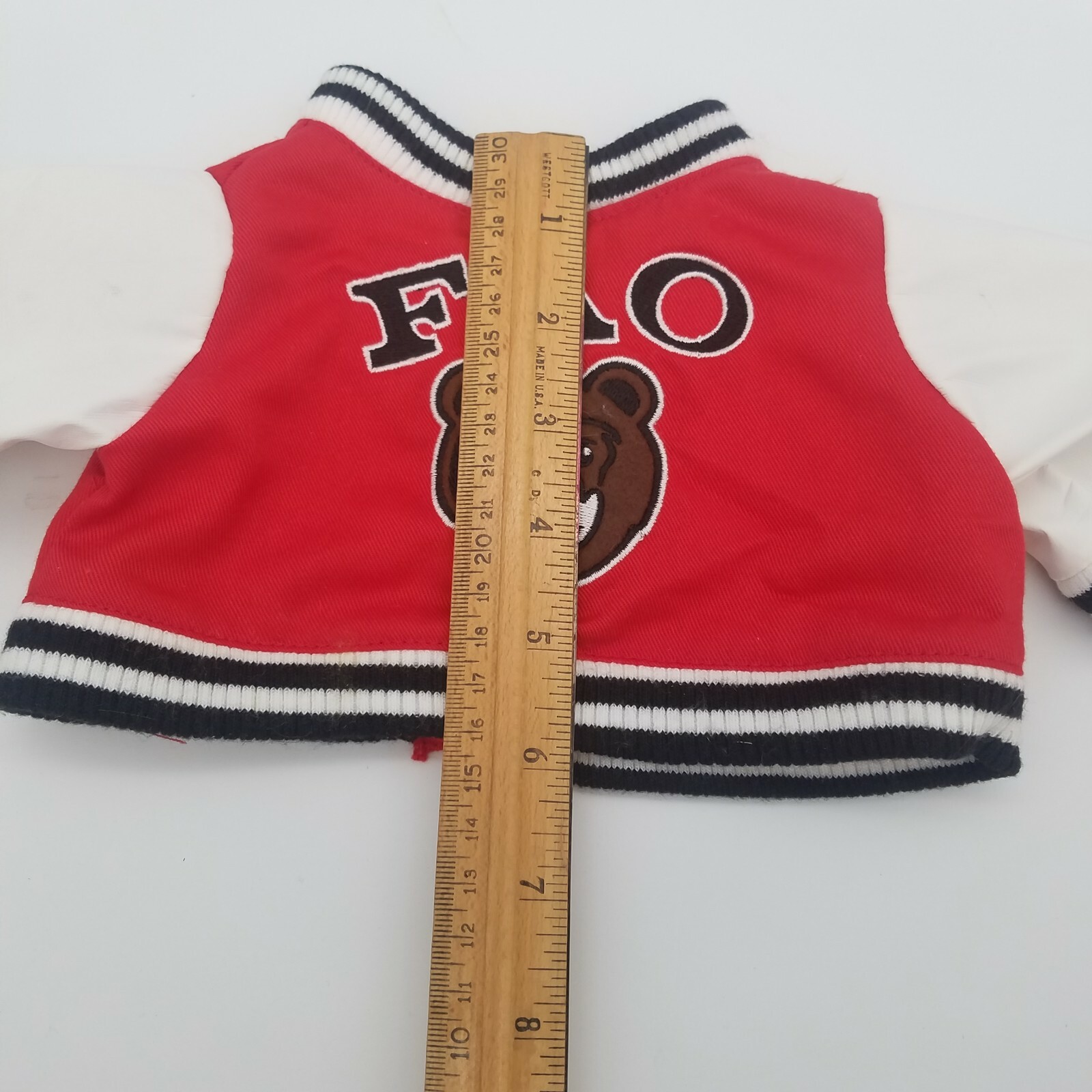 FAO Schwarz Plush Bear Size Doll Varsity Jacket Red Black White 1862