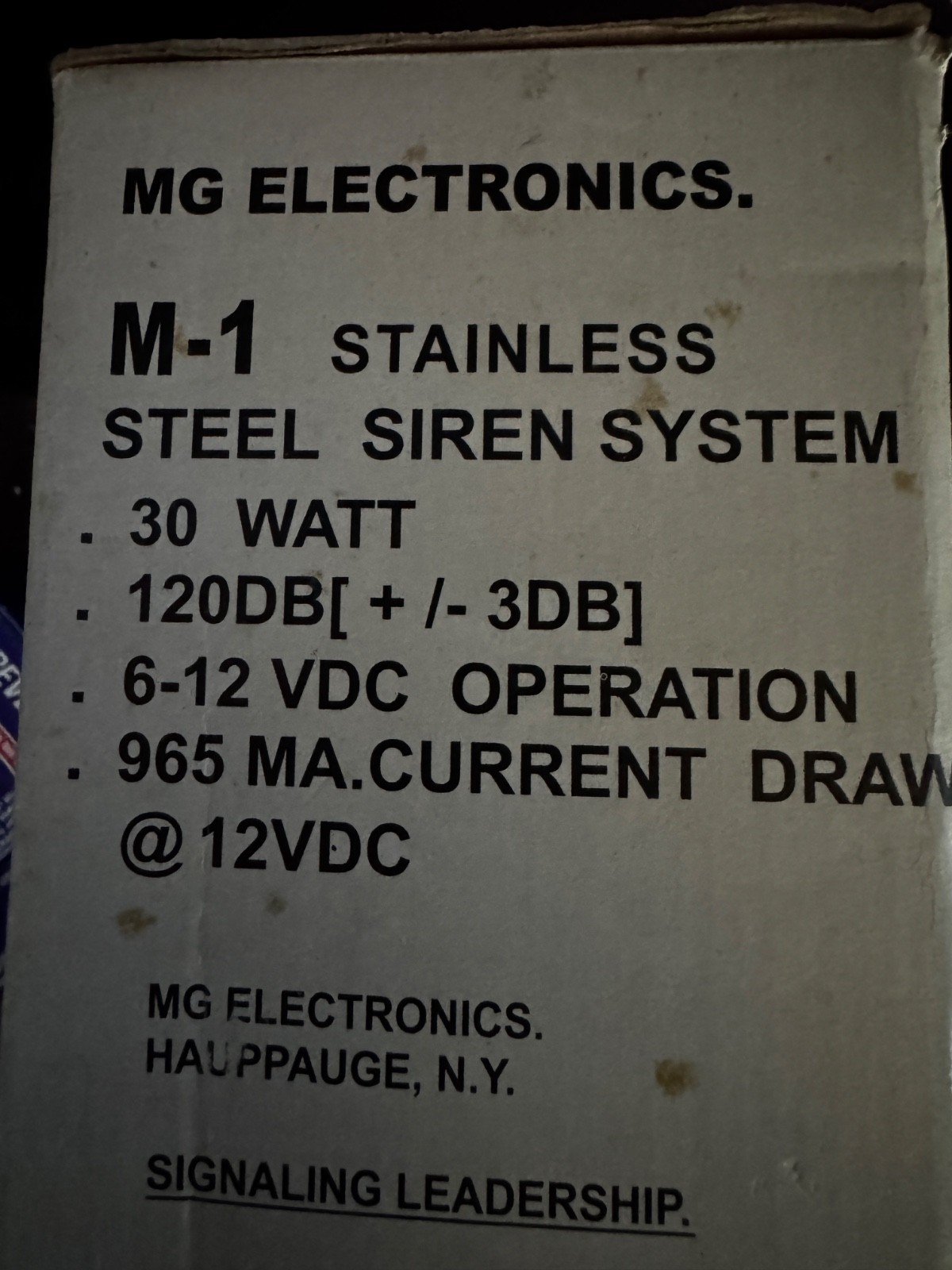 NEW MG M-1 Stainless Steel Siren System - 120 Decibel, 30 Watt Alarm Siren