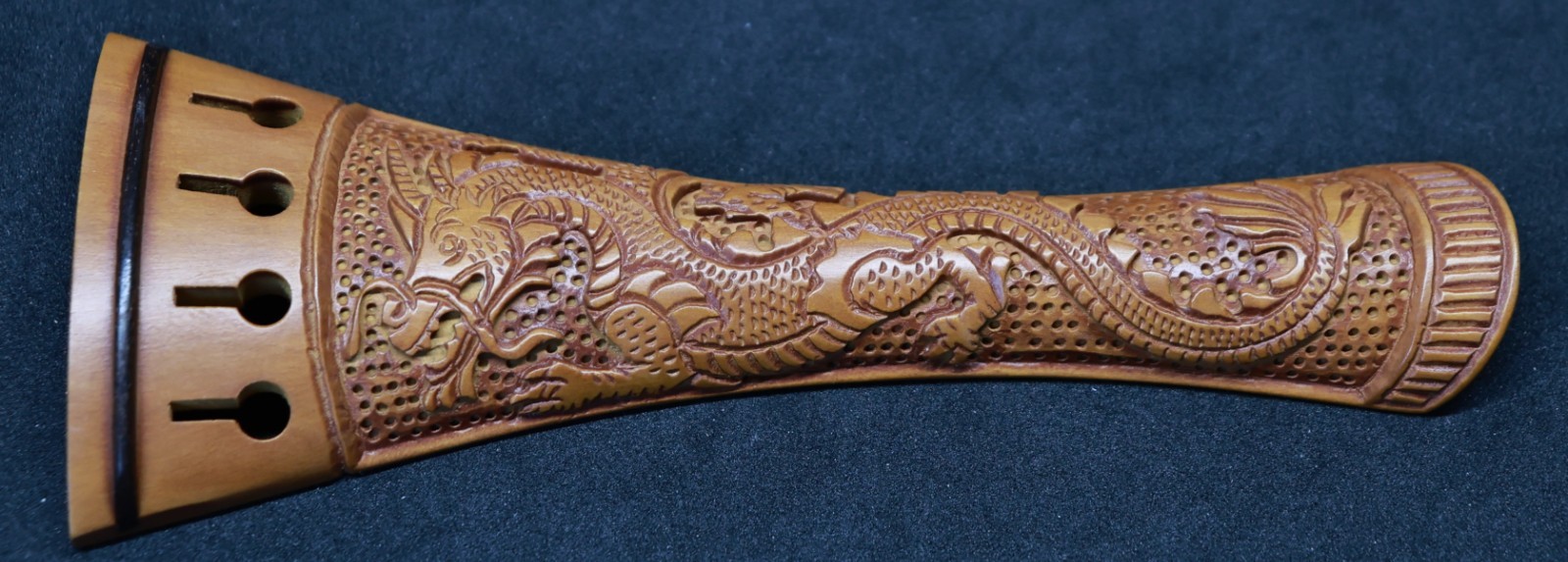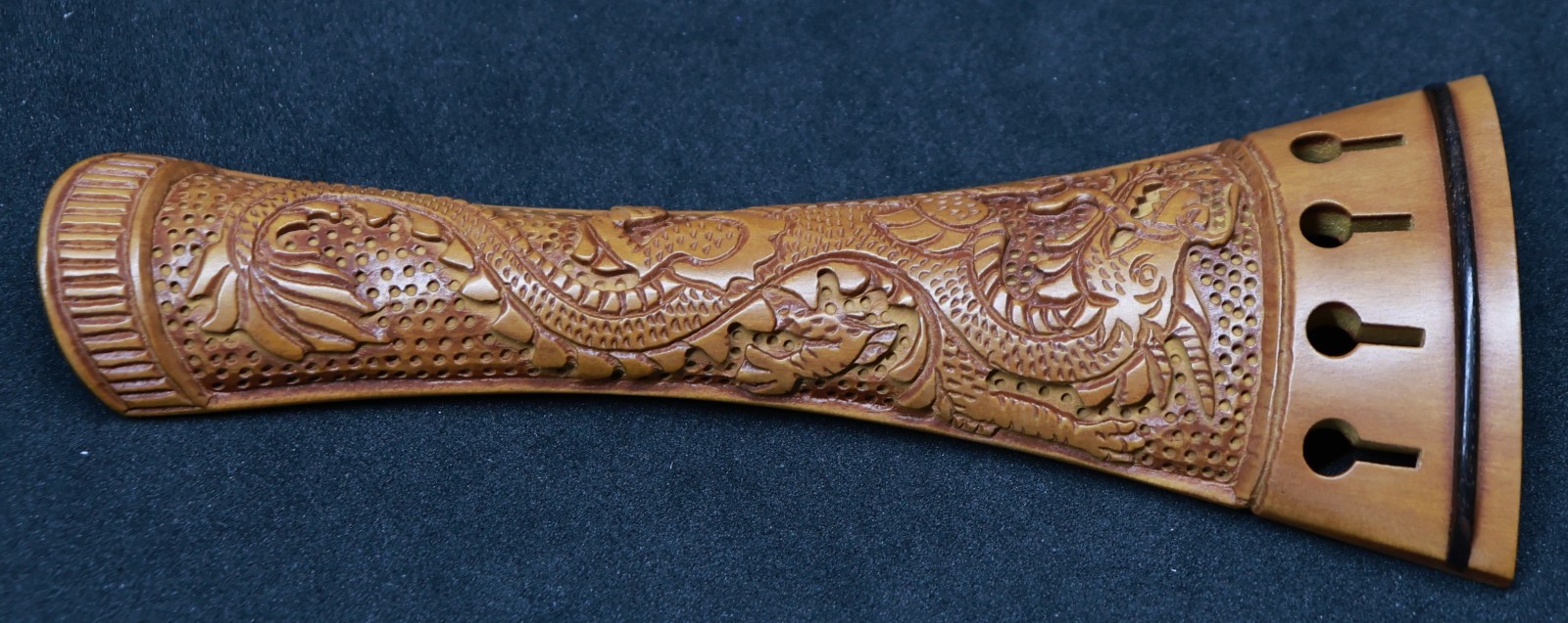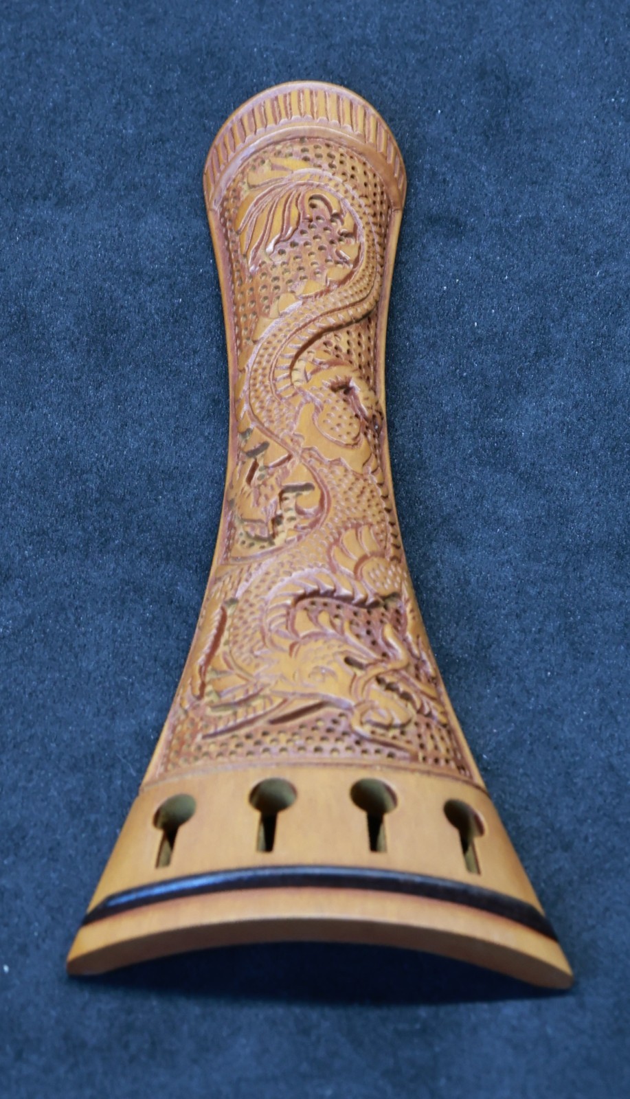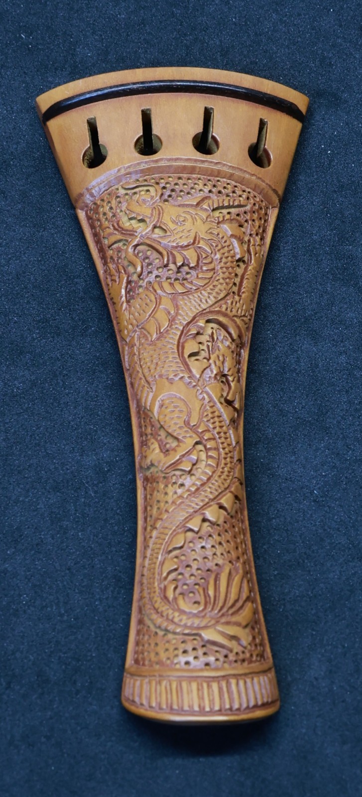Handmade Carved boxwood violin tailpiece 4/4. Dragon design B