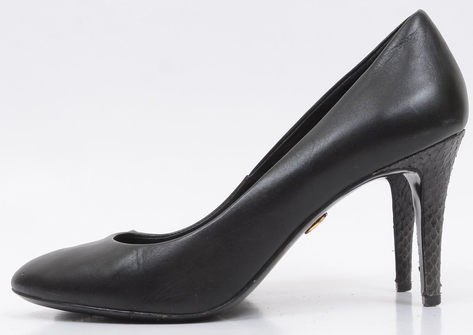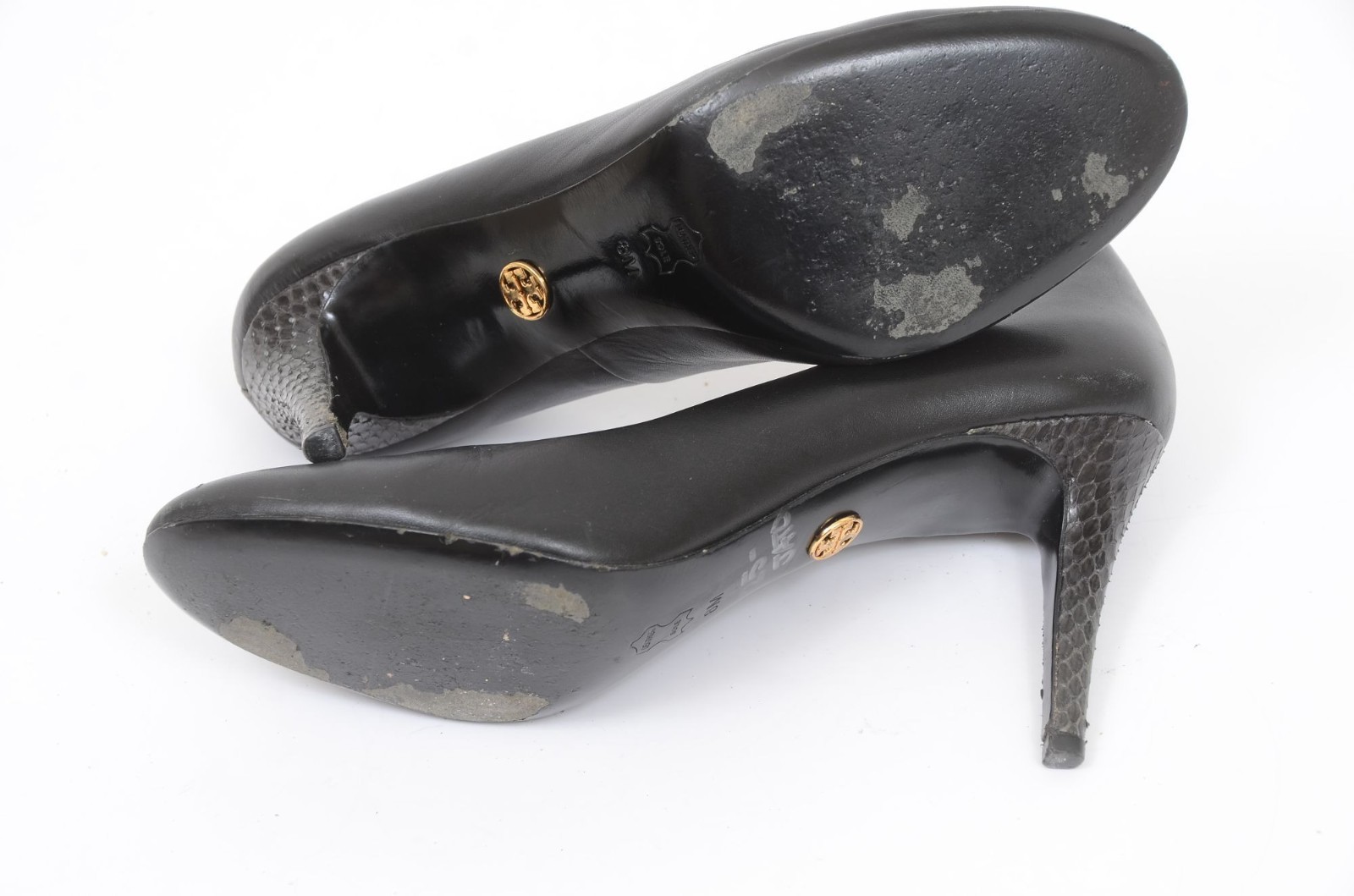 как выглядит Tory Burch Black Mabel Watersnake Heel Leather Pumps Size 8 Career Business Shoe фото