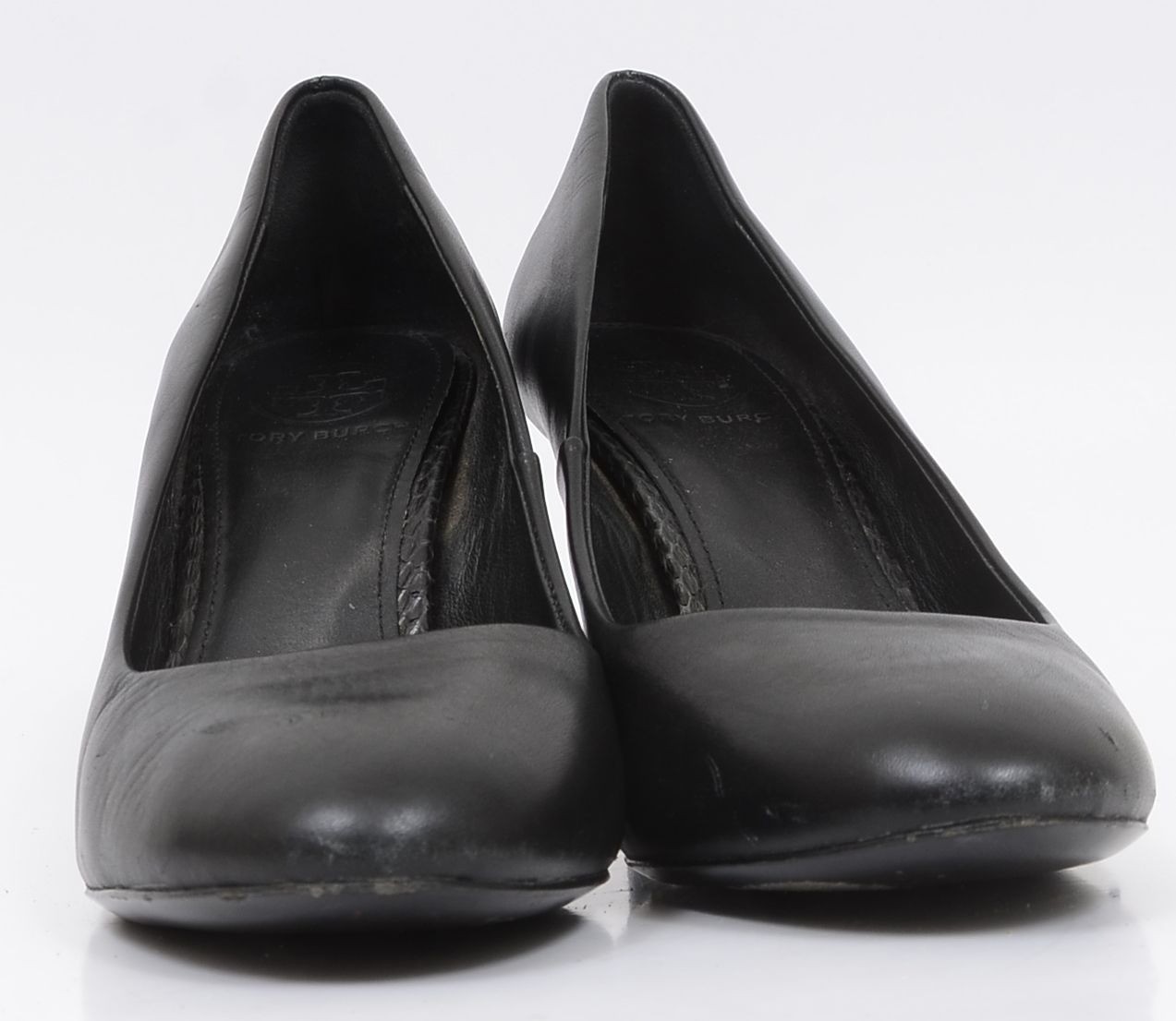 Tory Burch Black Mabel Watersnake Heel Leather Pumps Size 8 Career Business Shoe
