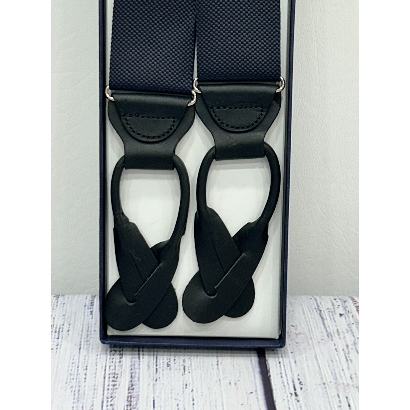 NEW Brooks Brothers Men's Navy Silver Tone Button-End Suspenders Leather Trim