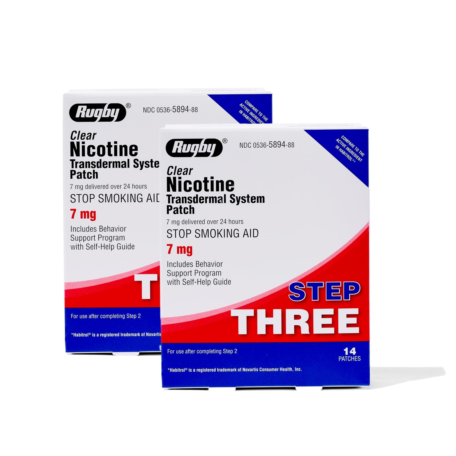 Rugby Clear Nicotine Patches Step 3 - 7mg Transdermal- Smoking Quitting 2 Pack