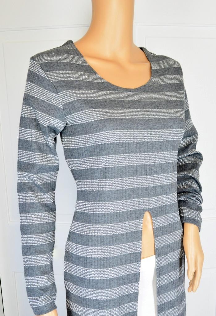 как выглядит VTG 80s Cristina Metallic Silver Stripe Ribbed Glam Rock Open Vest/Jacket/Dress фото