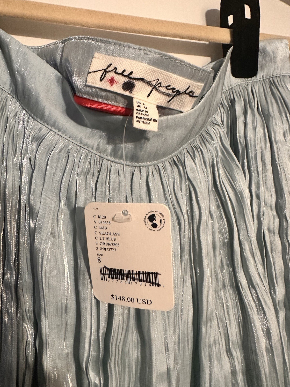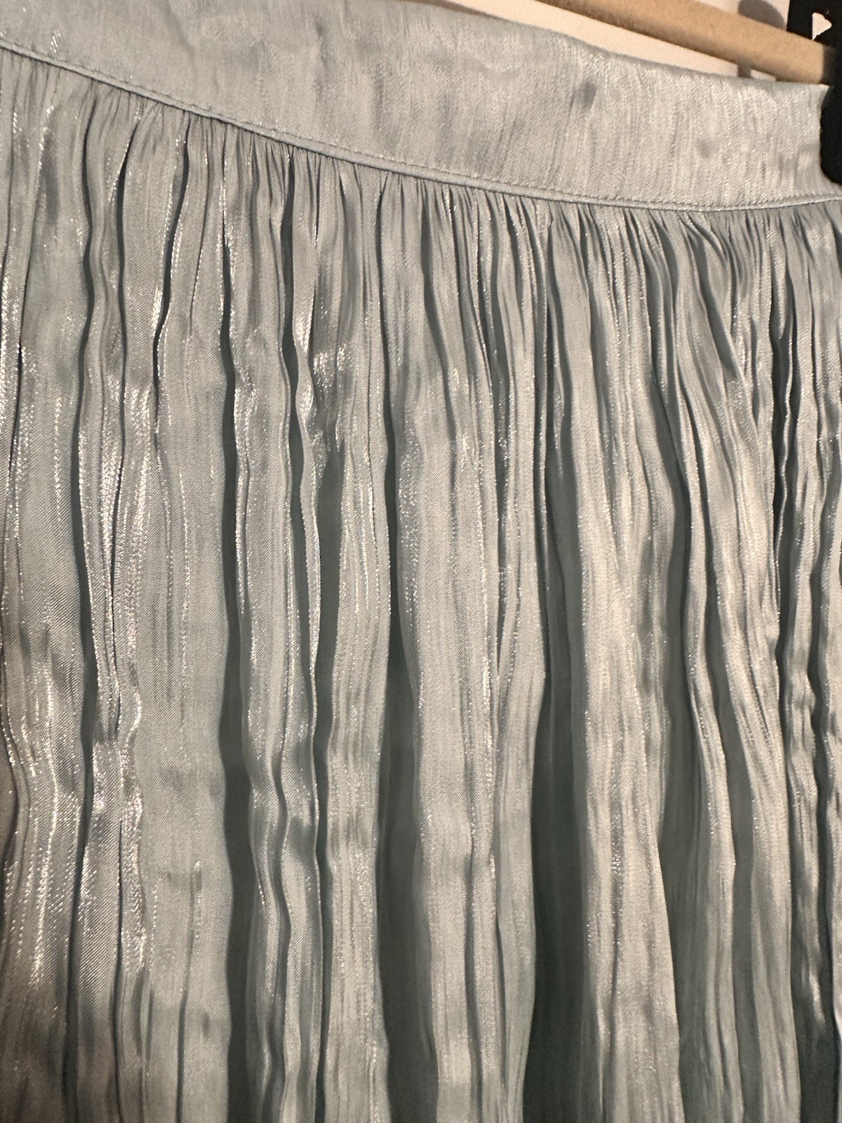 как выглядит FREE PEOPLE Seaglass Blue Crinkle Pleated Midi Skirt Size 8 Shimmer фото