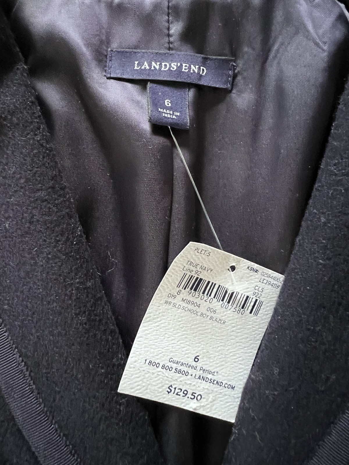 Lands' End NEW Navy Wool School Boy Blazer Jacket Size 6 NWT