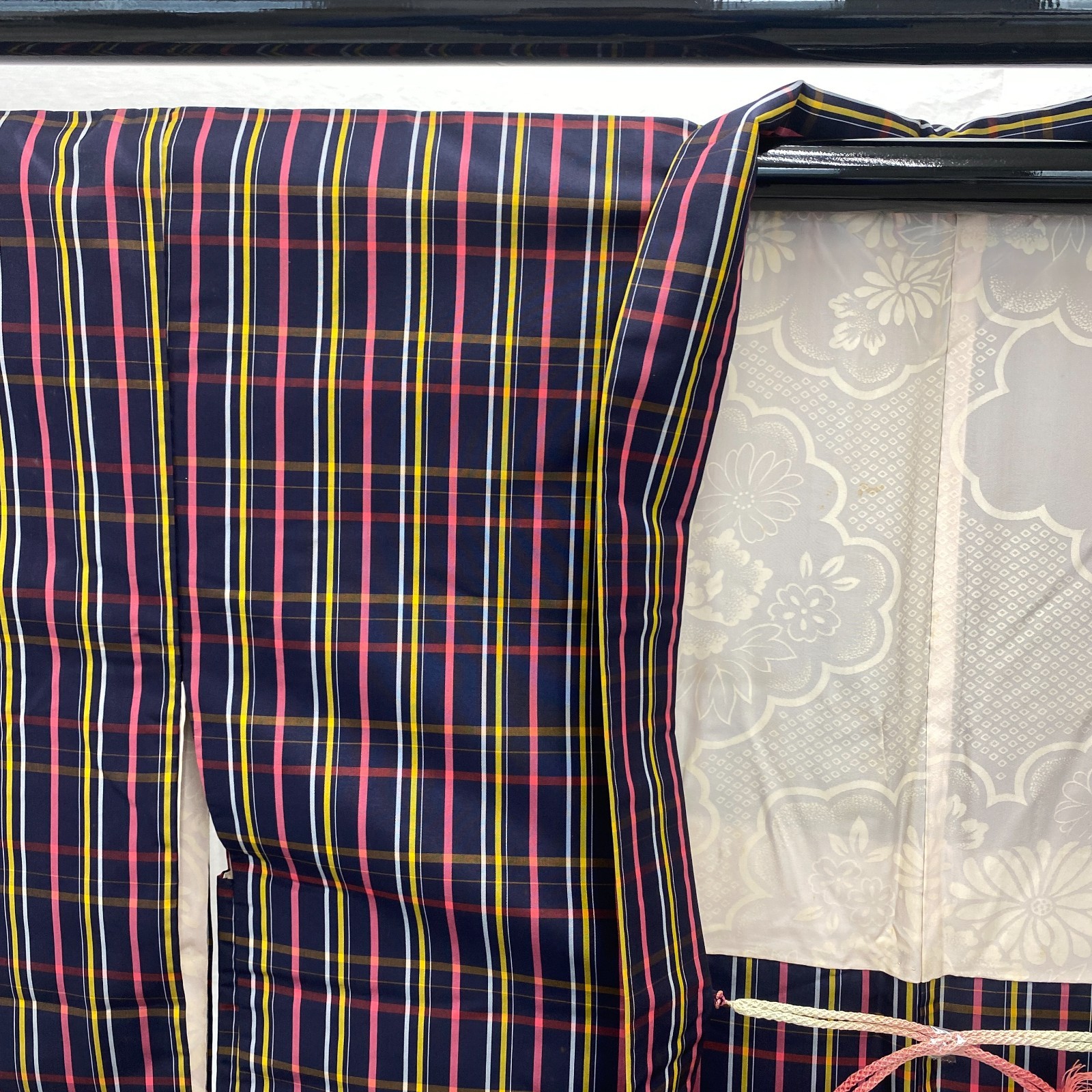 как выглядит Japanese Vintage Kimono Haori Jacket Polyester Navy Traditional Authentic 30 in фото