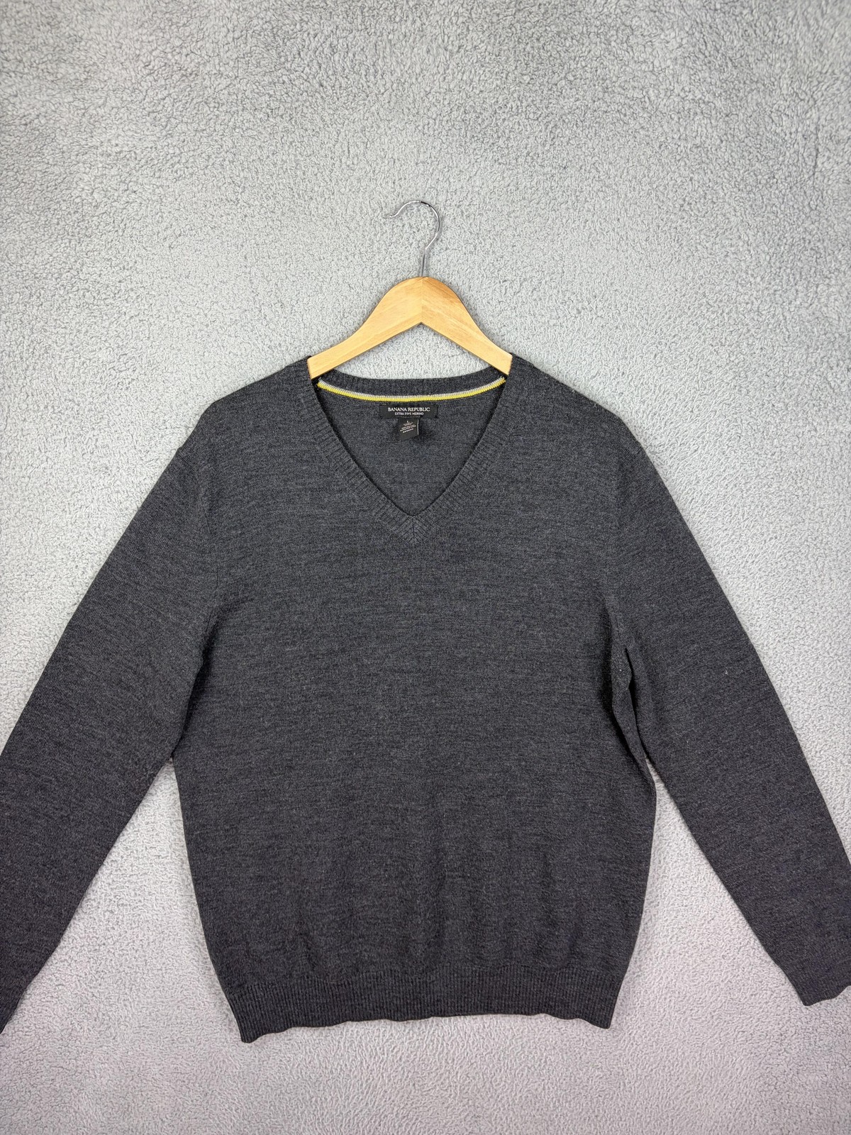 Banana Republic Sweater Mens L Gray Extra Fine Merino Wool V Neck Pullover Knit