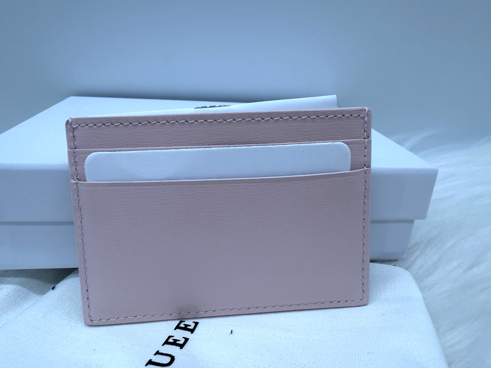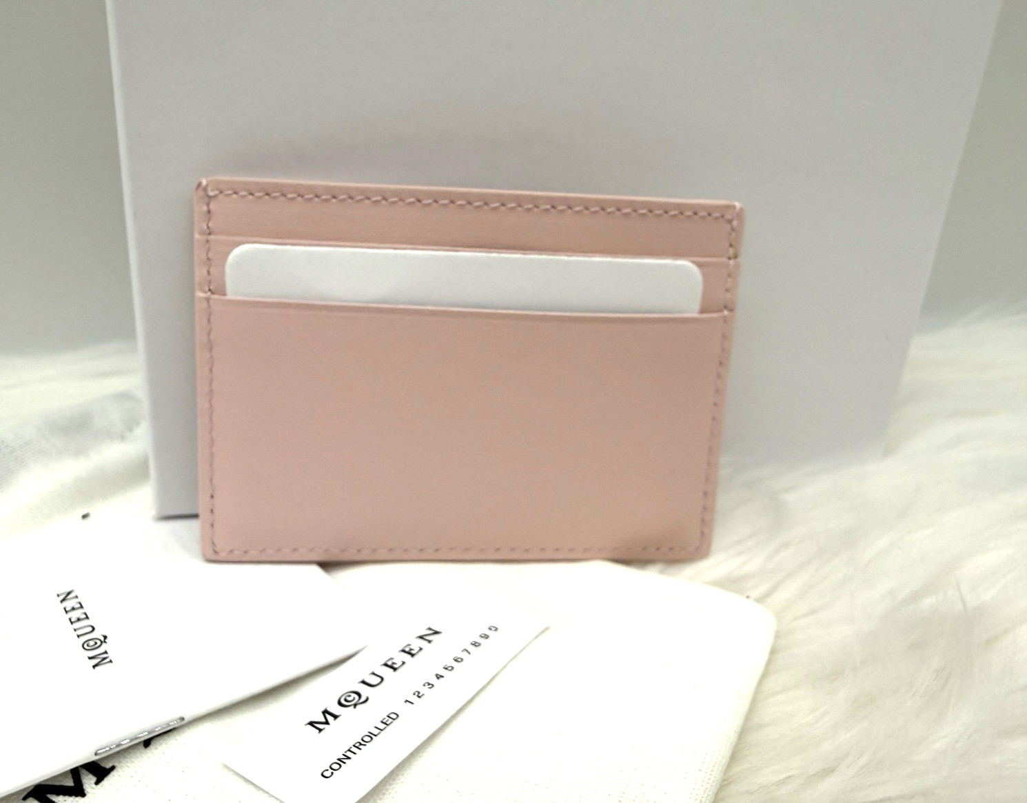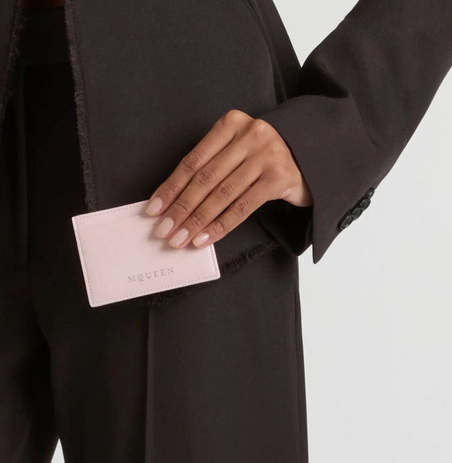 как выглядит AUTH NWOT McQueen Foil Logo Business Card Case Holder In Rose/ Silver With Box фото