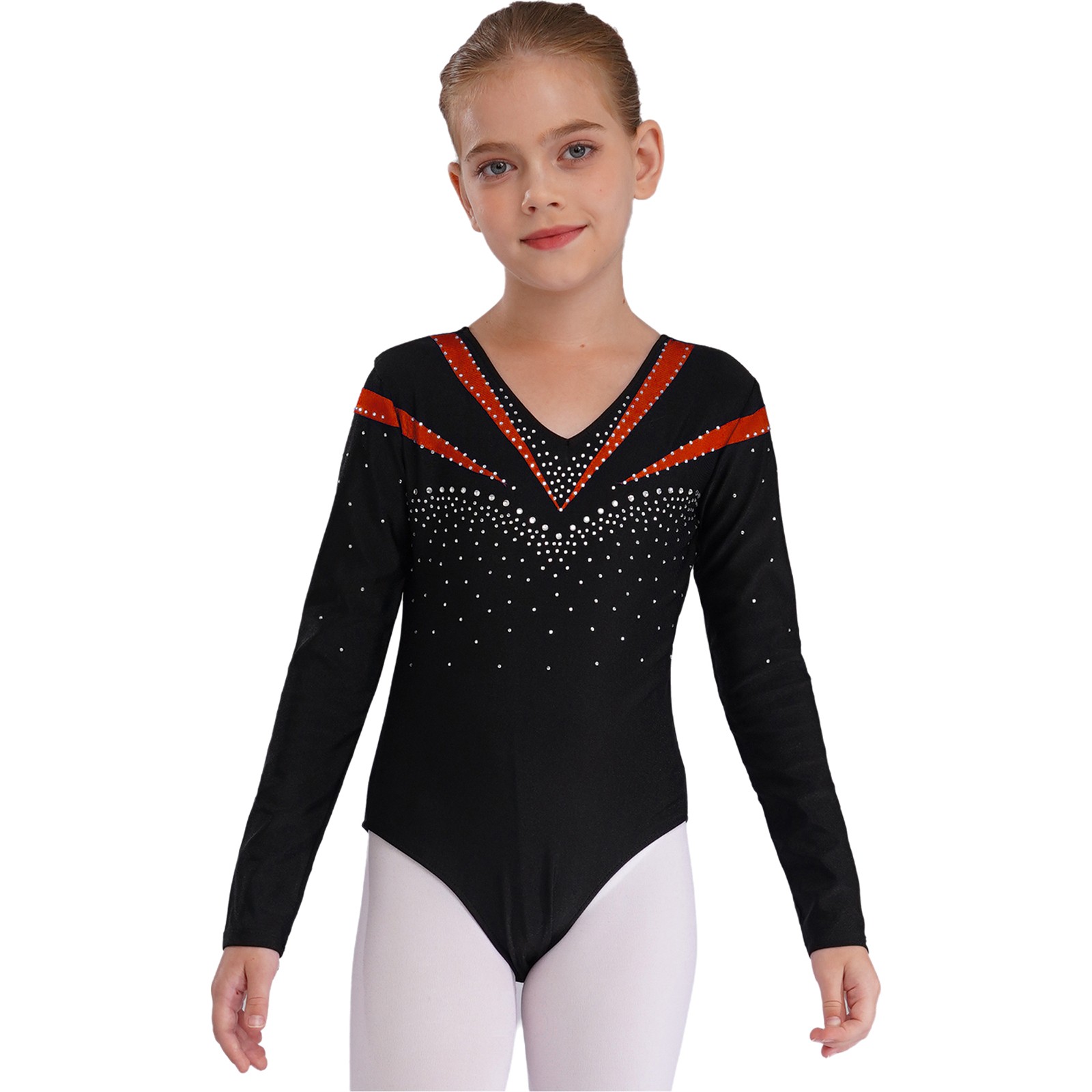 Girls Outfits Dancewear Set Show Gymnastics Crop Top V Neck Figure Skating Yoga