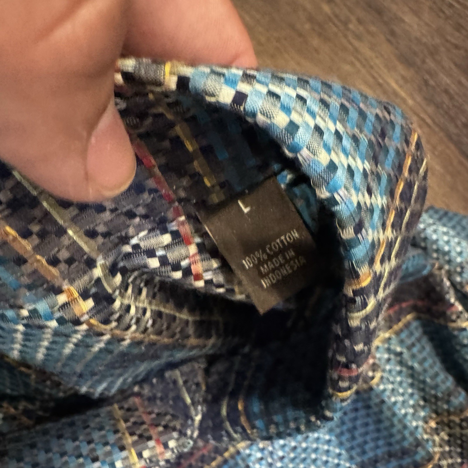 как выглядит Men s Tasso Elba Plaid Button Shirt Sz Large Rare Geometric Design фото