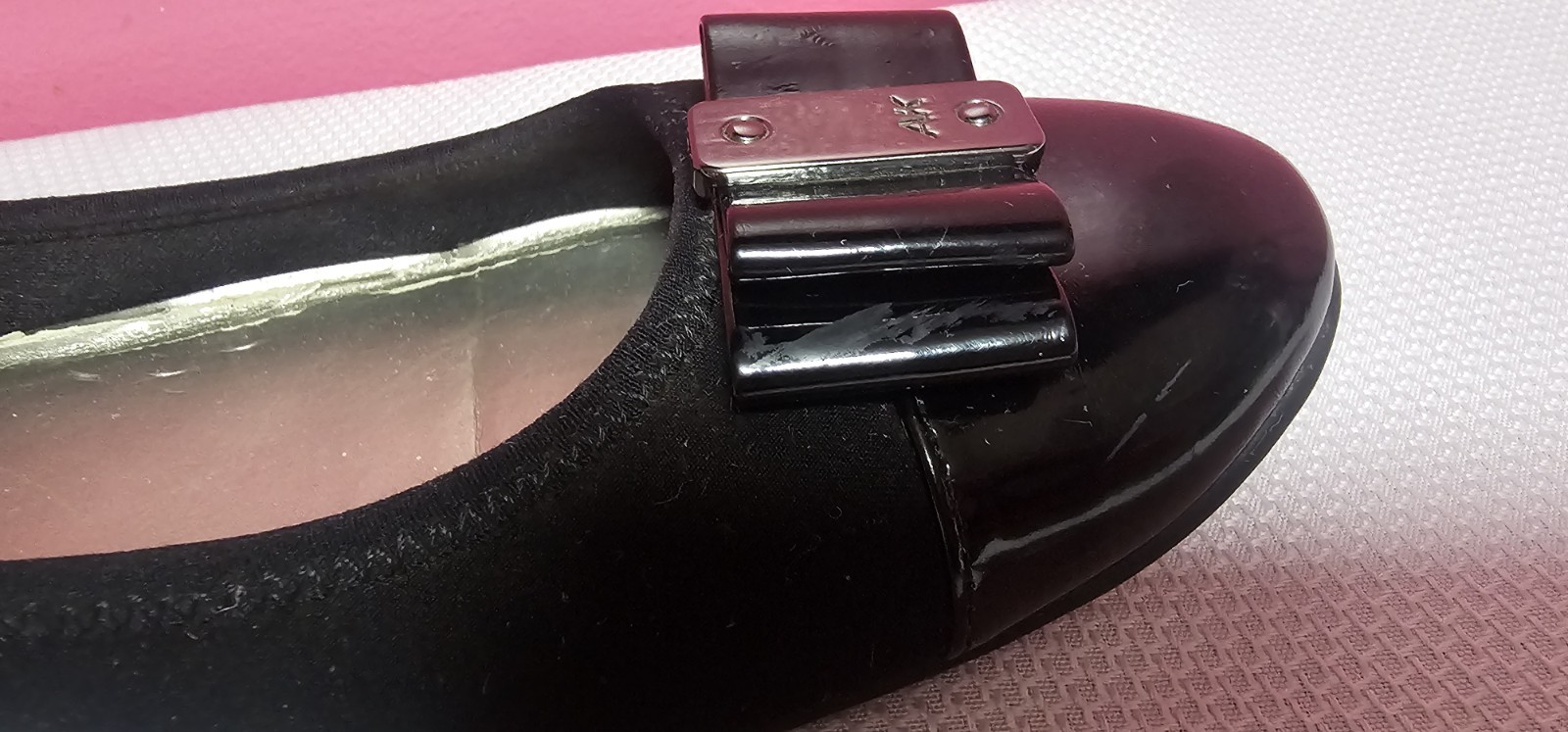 как выглядит Anne Klein Sport Akaricia Black Fabric Patent Leather Flat 9.5M 25013614-9X0 фото