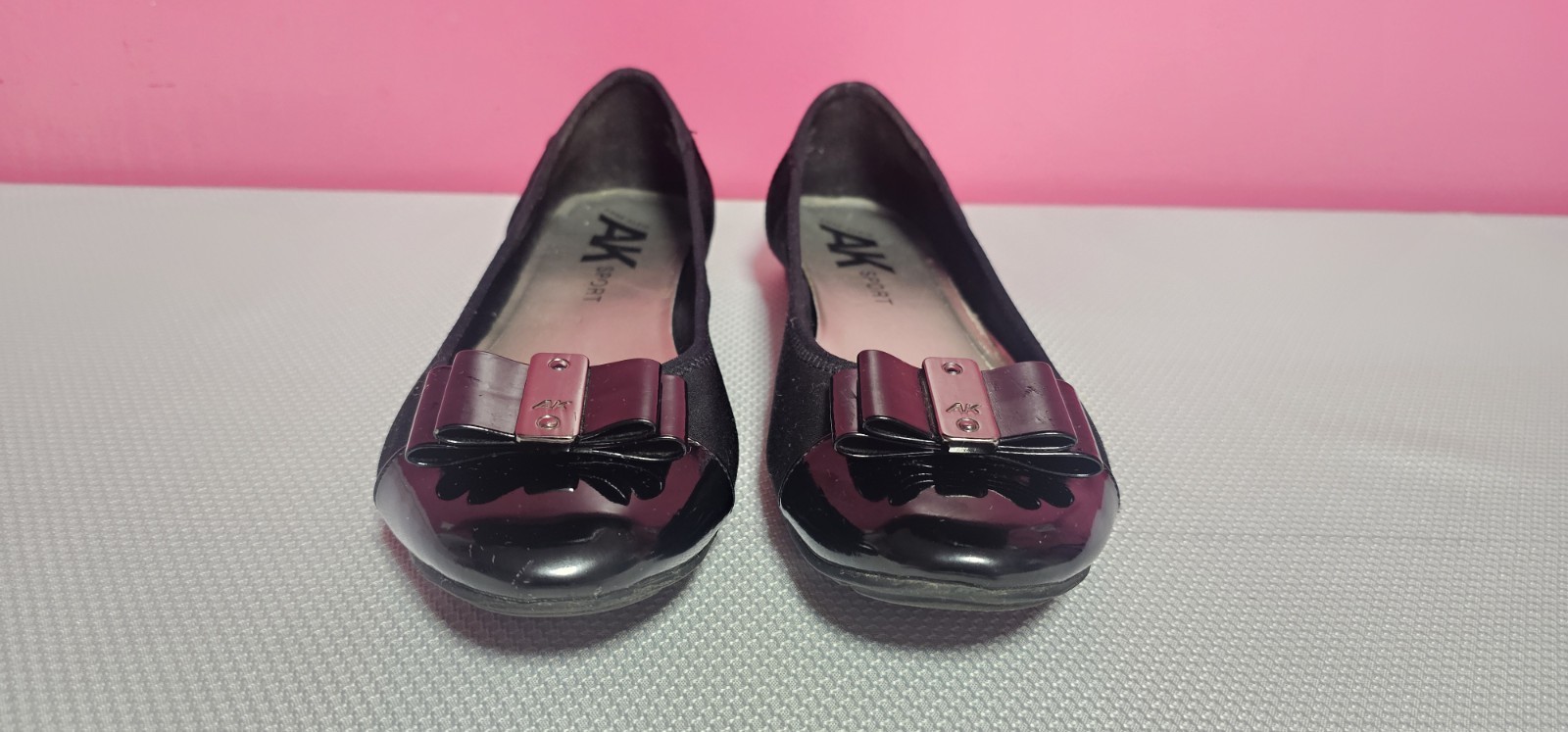 Anne Klein Sport Akaricia Black Fabric Patent Leather Flat 9.5M 25013614-9X0