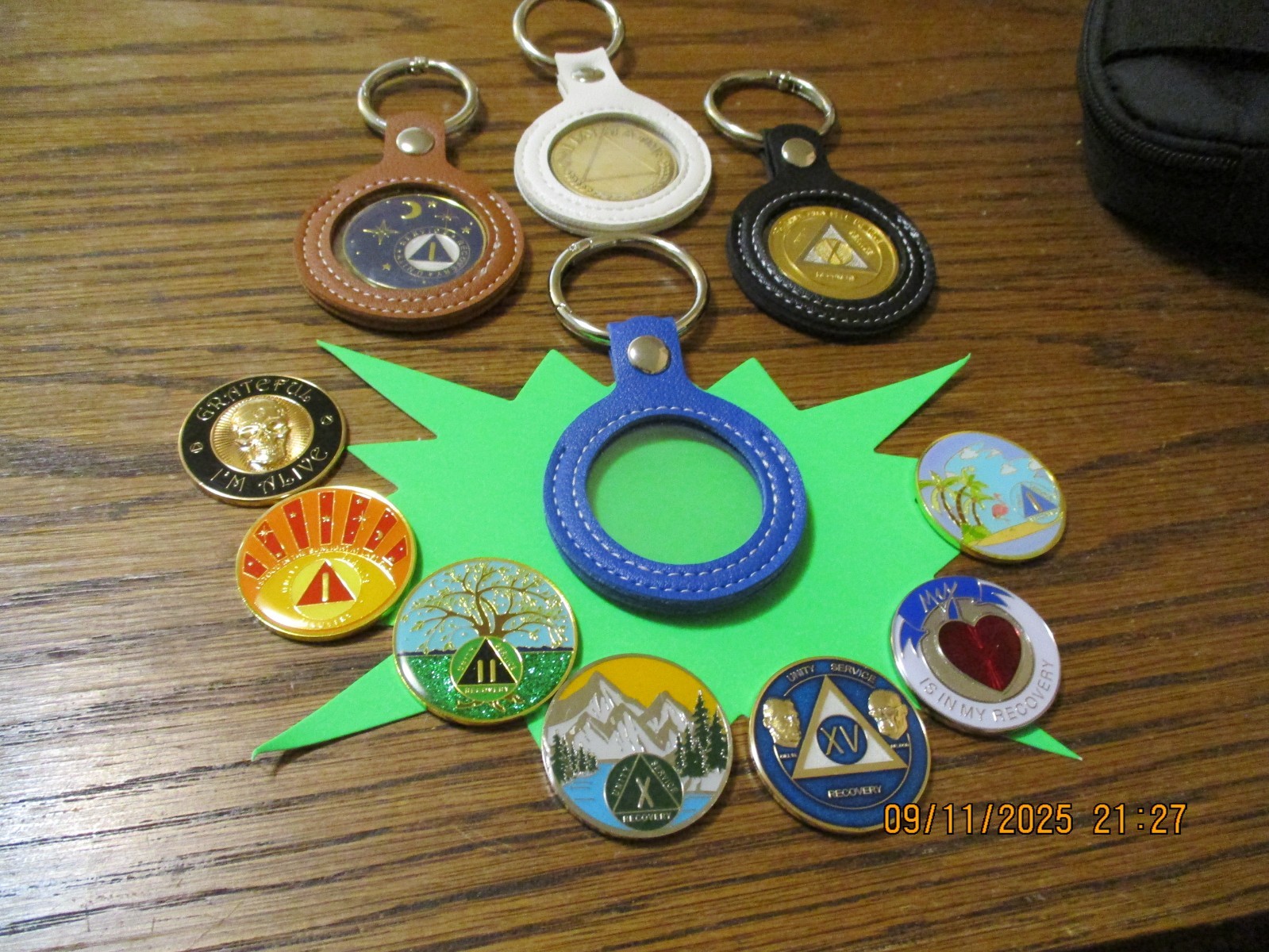 • Coin Holder Keychain Brown - OR CHOICE - Hand-Stitched, Display Both Sides