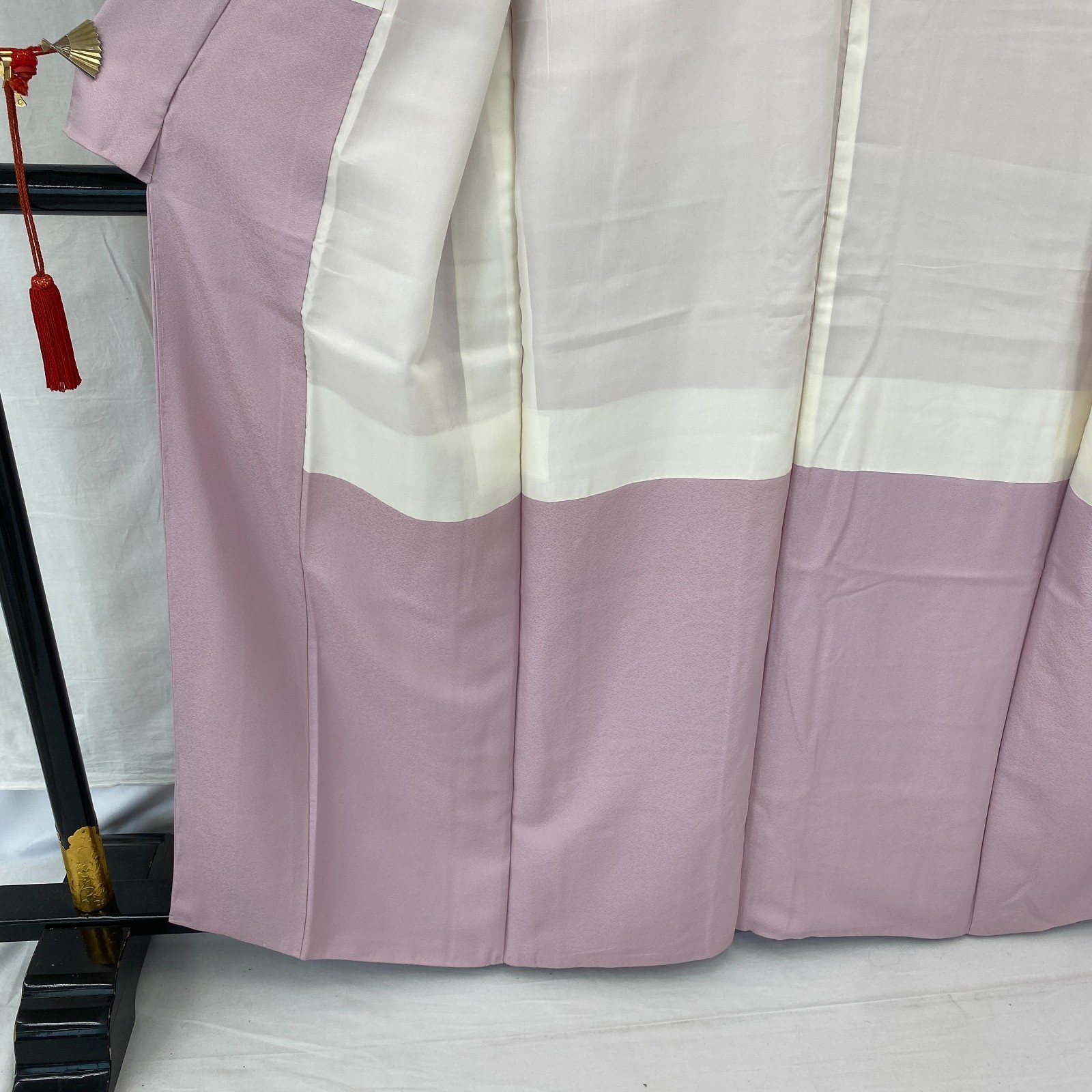 Japanese Vintage Kimono Silk Purple Embroidery Traditional Authentic Length 62in
