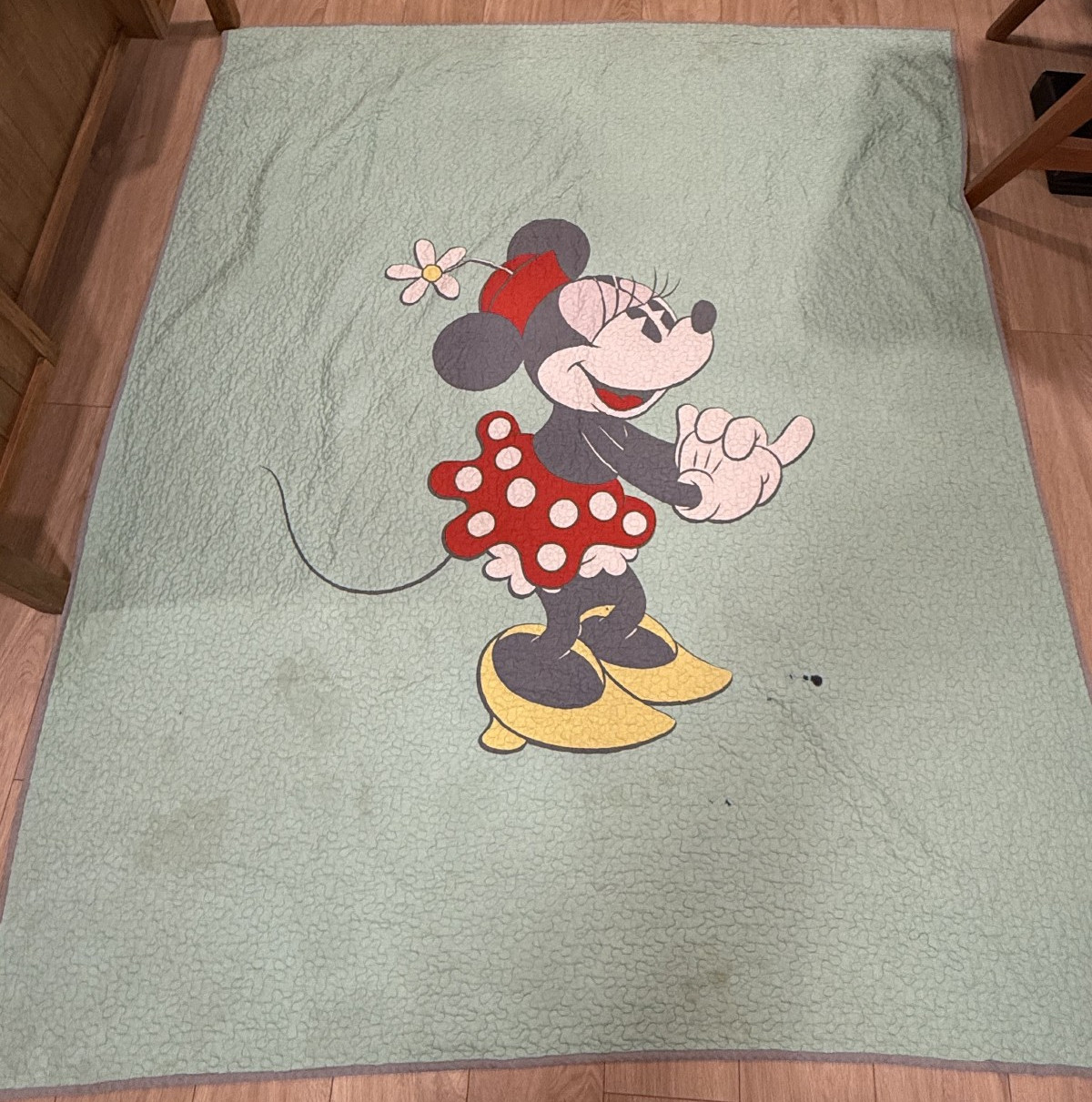 Vintage Minnie Mouse Quilted Blanket Throw Walt Disney Teal FREE SHIPPING