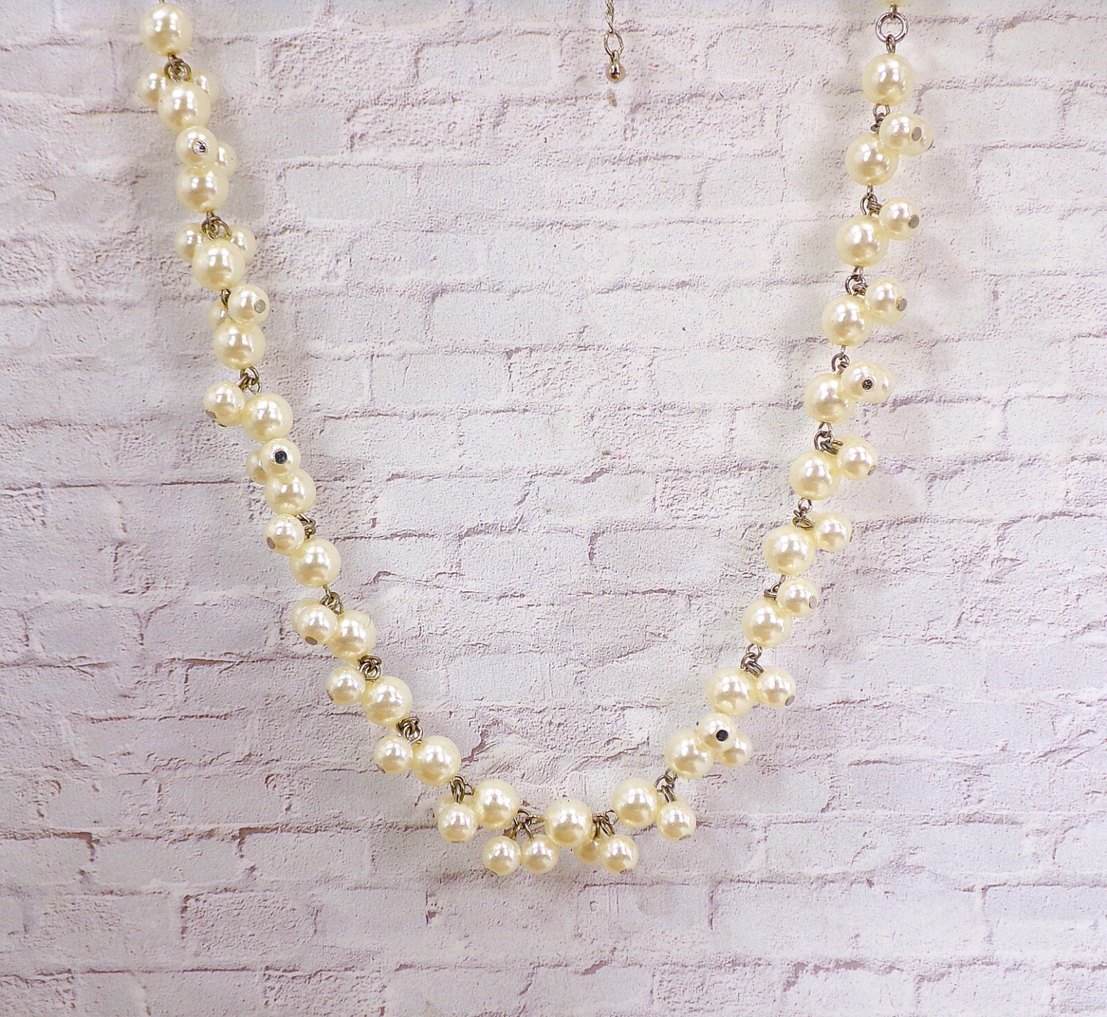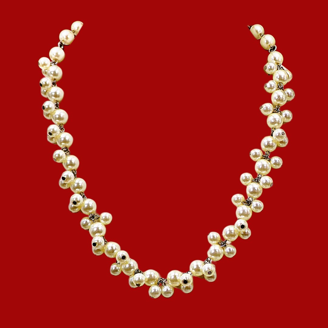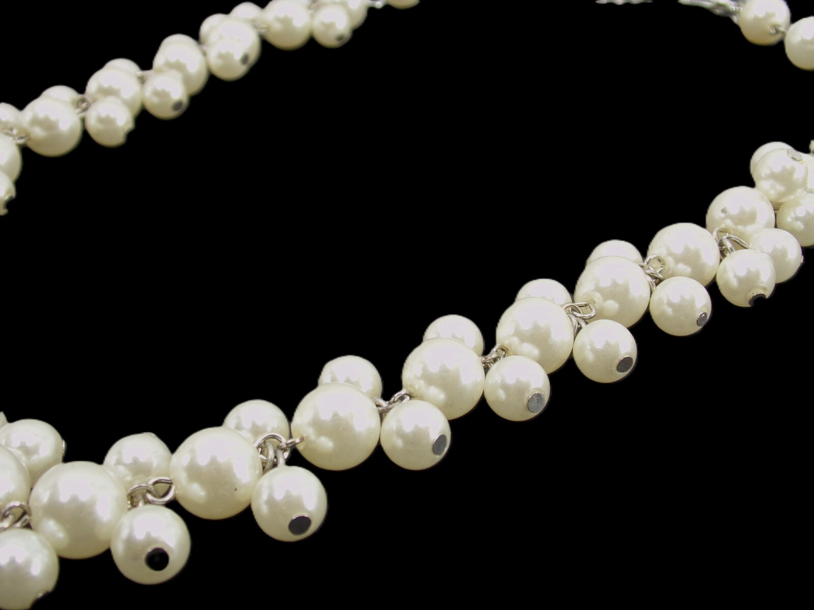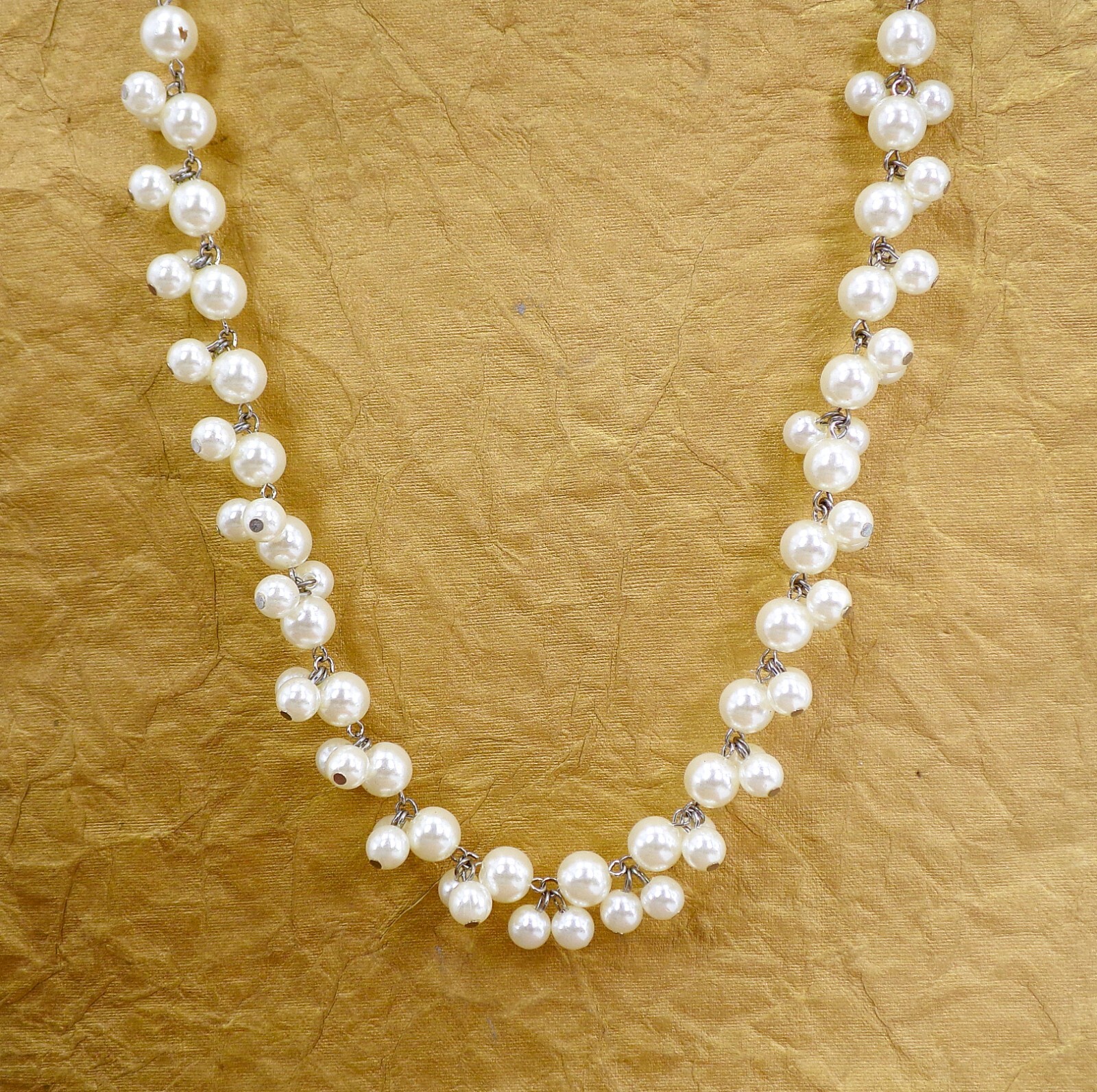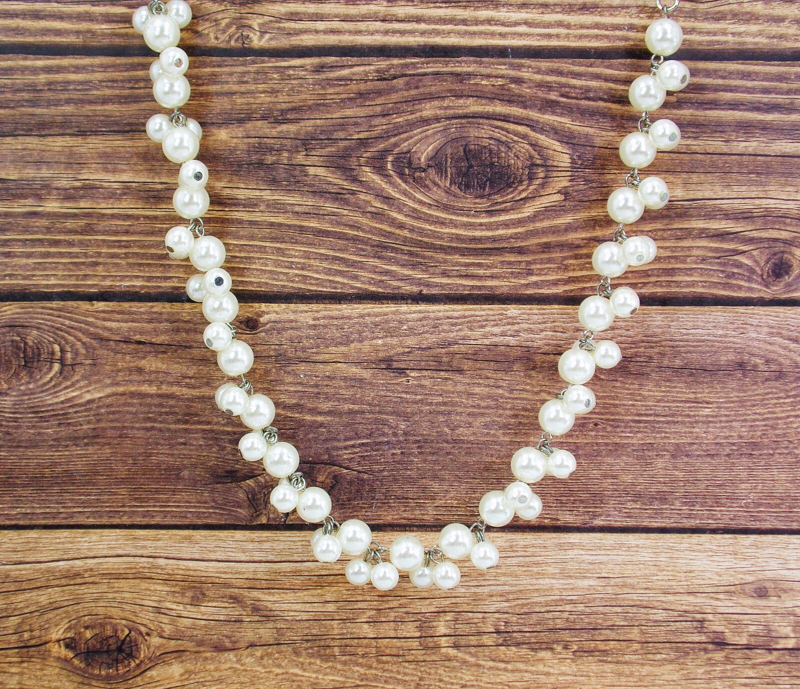 White pearl bead necklace made in clusters of round beads, fashon necklace New