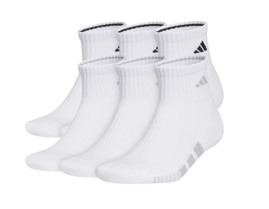 Adidas Mens Socks White Multicolor 6-Pair Quarter Arch Compression Cushioned