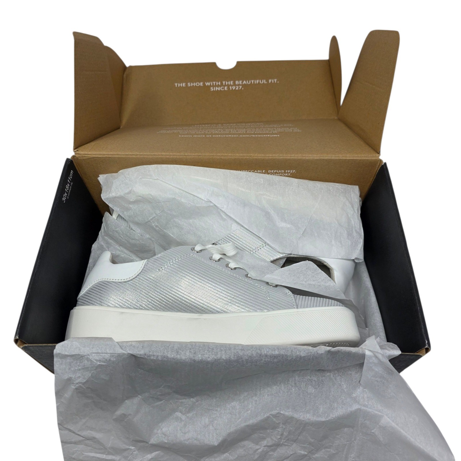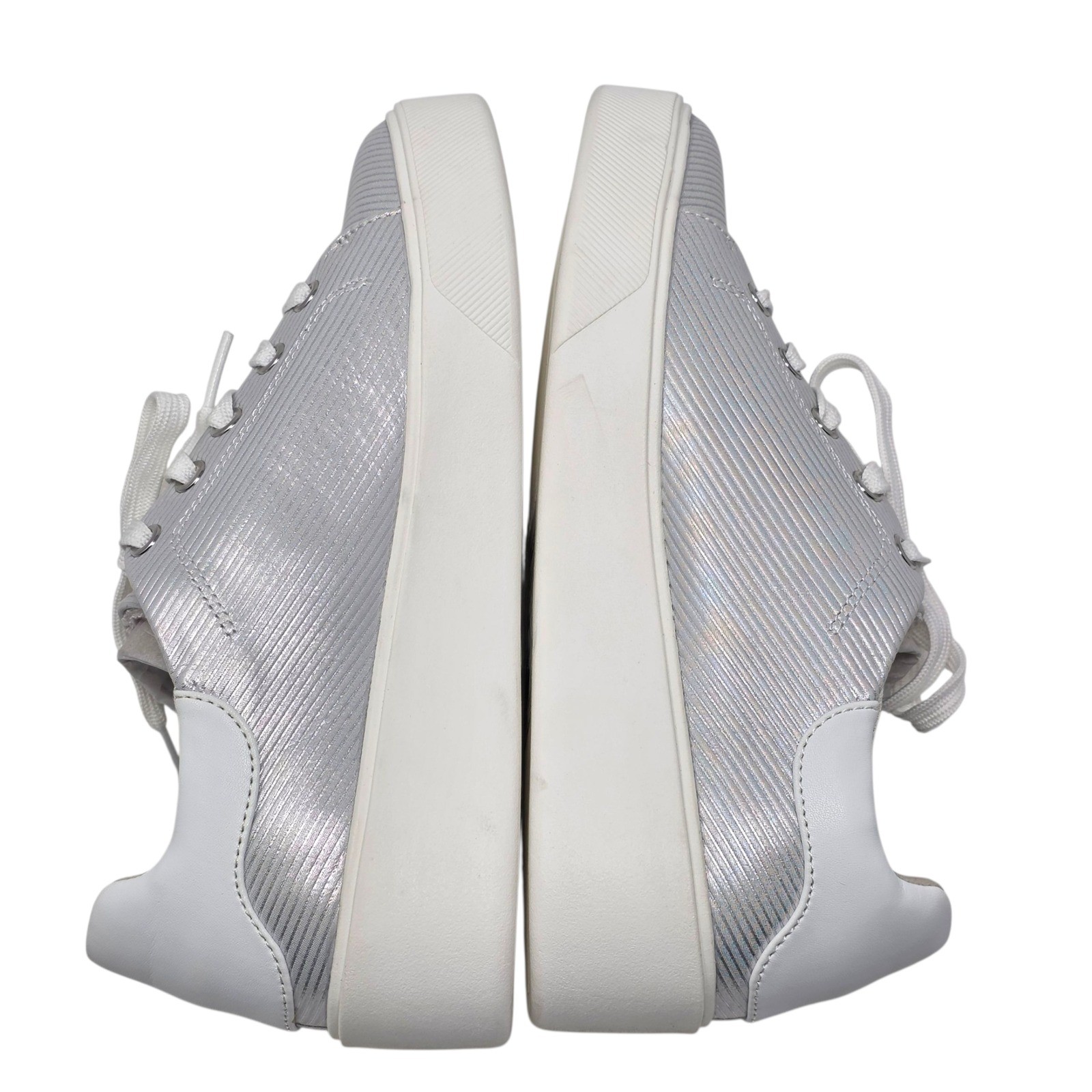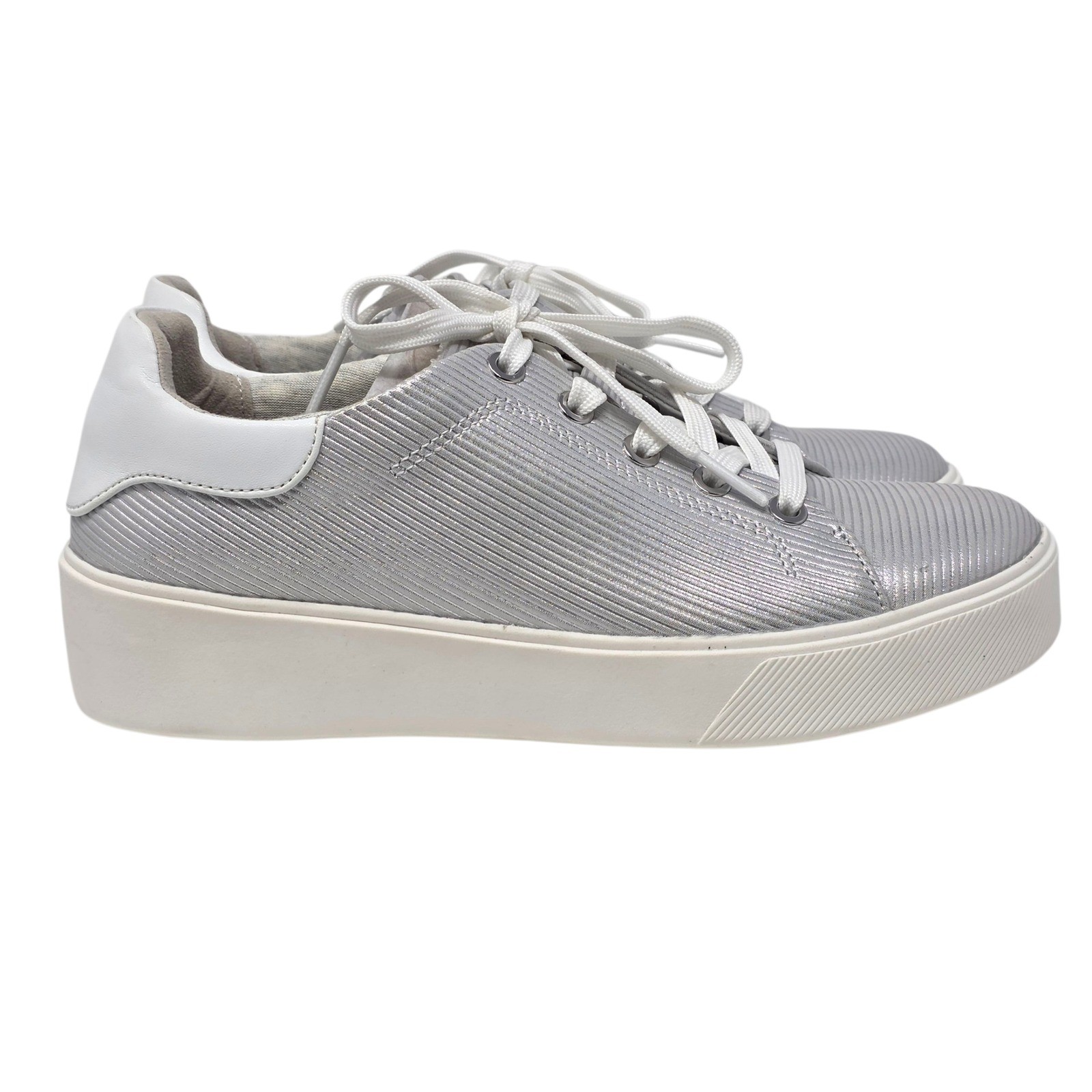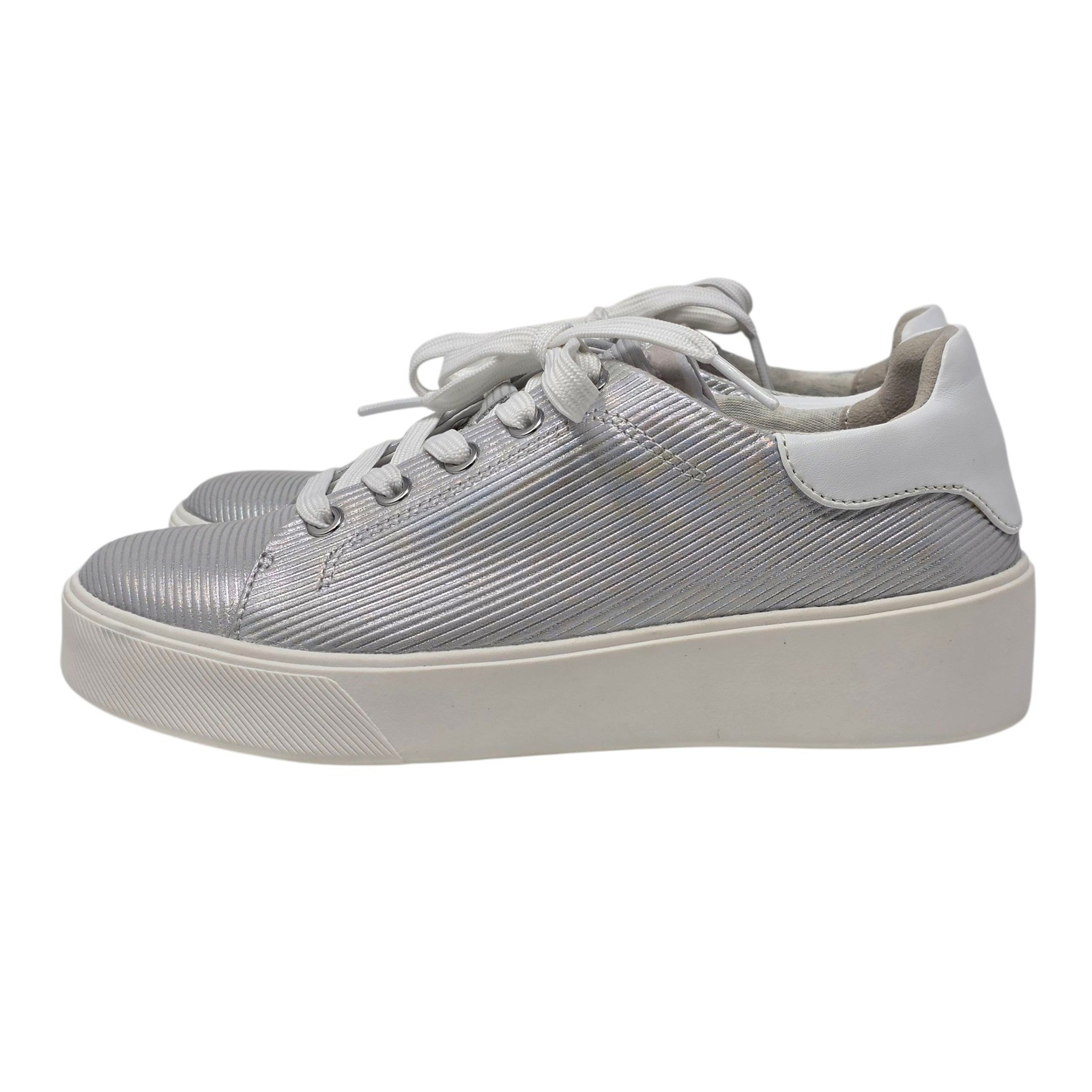 Naturalizer Morrison Metallic Stripe Leather Platform Sneakers Silver US 6.5M