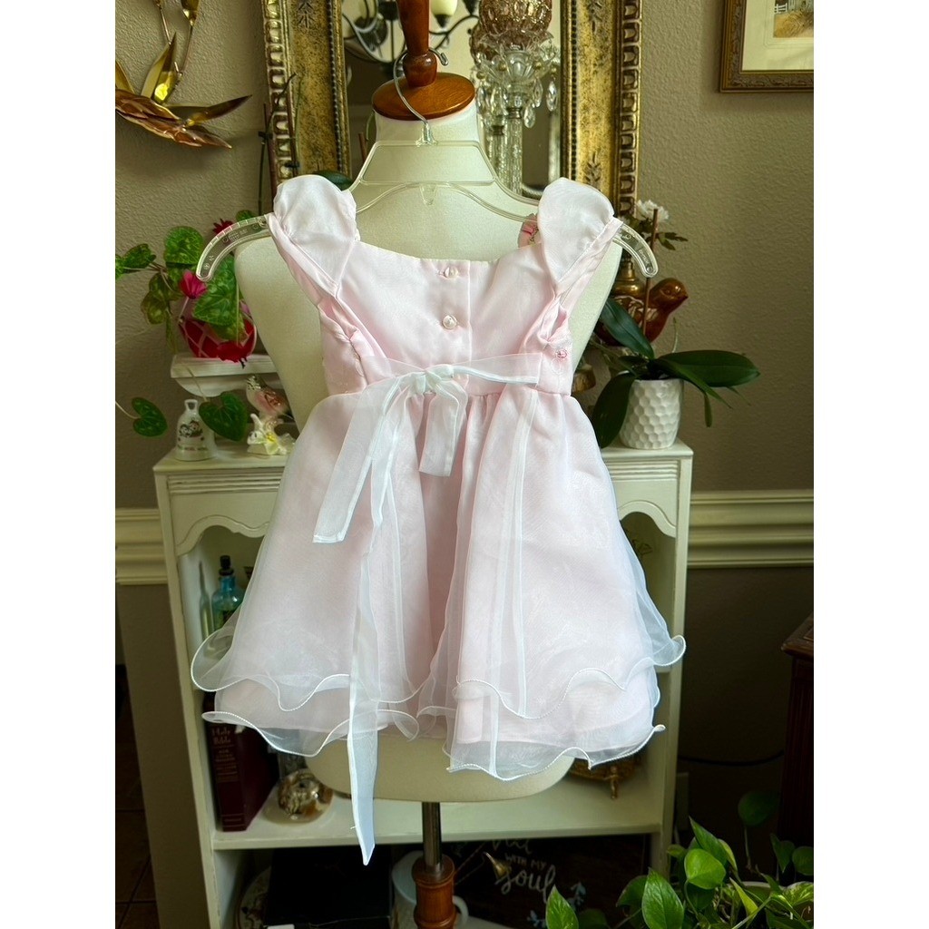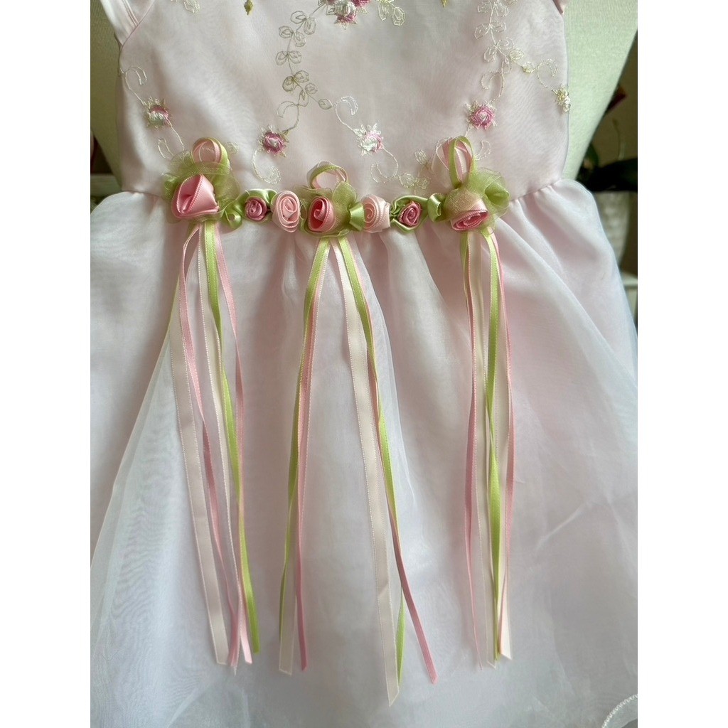 как выглядит Vintage Rare Editions Sz 24M Pink Embroidered Ribbons Roses Scalloped Dress фото