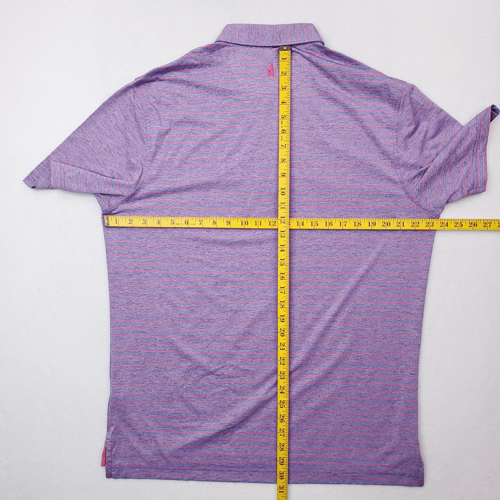 как выглядит Johnnie O Polo Shirt Mens Large Purple Pink Striped Performance Golf UPF 50 фото