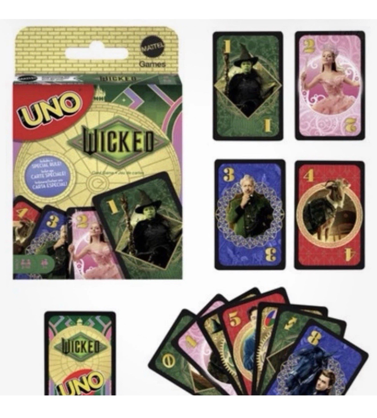 как выглядит WICKED: Mattel UNO Cards Game ELPHABA, GLINDA. FIYERO, OZ SOLD OUT IN STORES фото