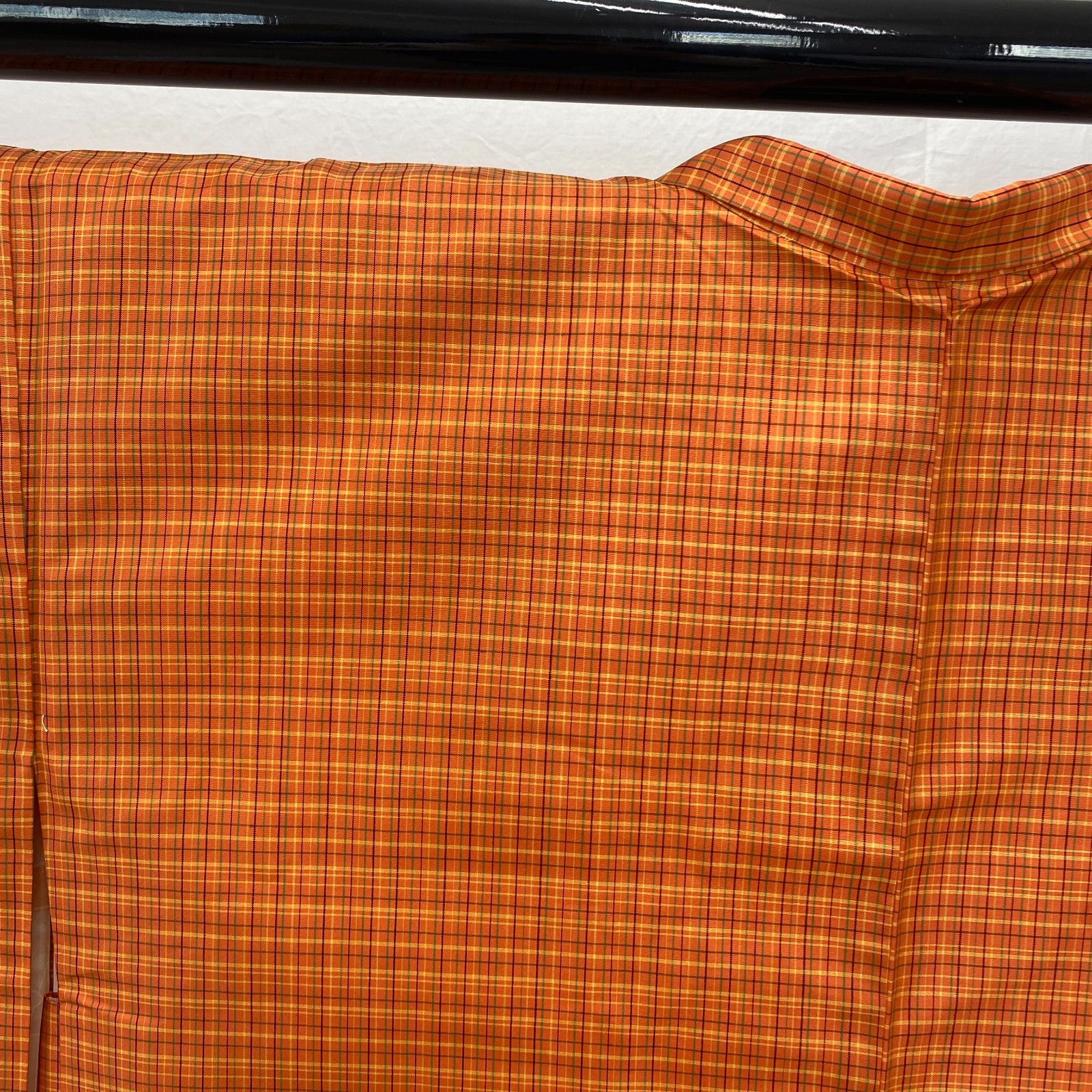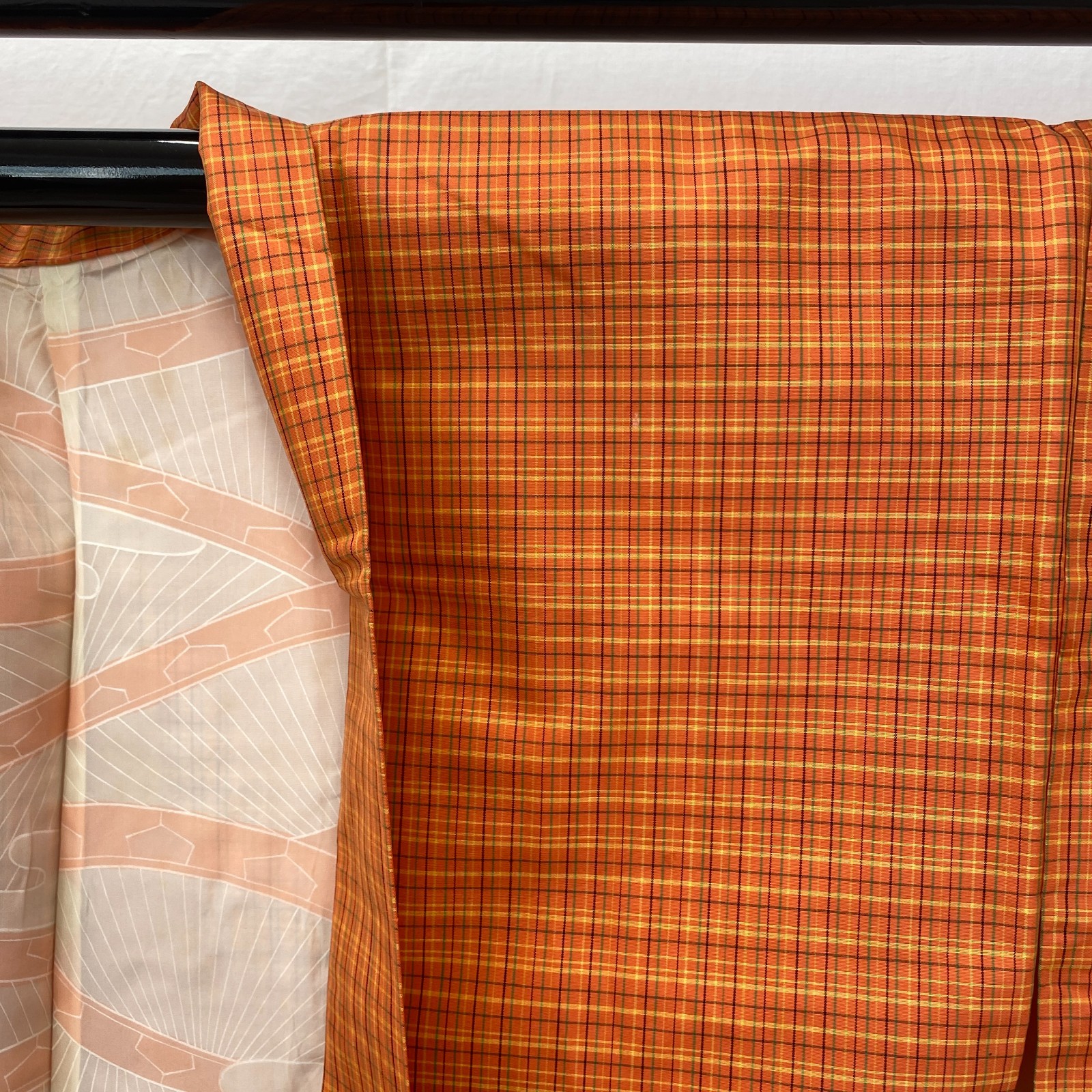 Japanese Vintage Kimono Haori Jacket Polyester Orange Traditional Authentic 32in