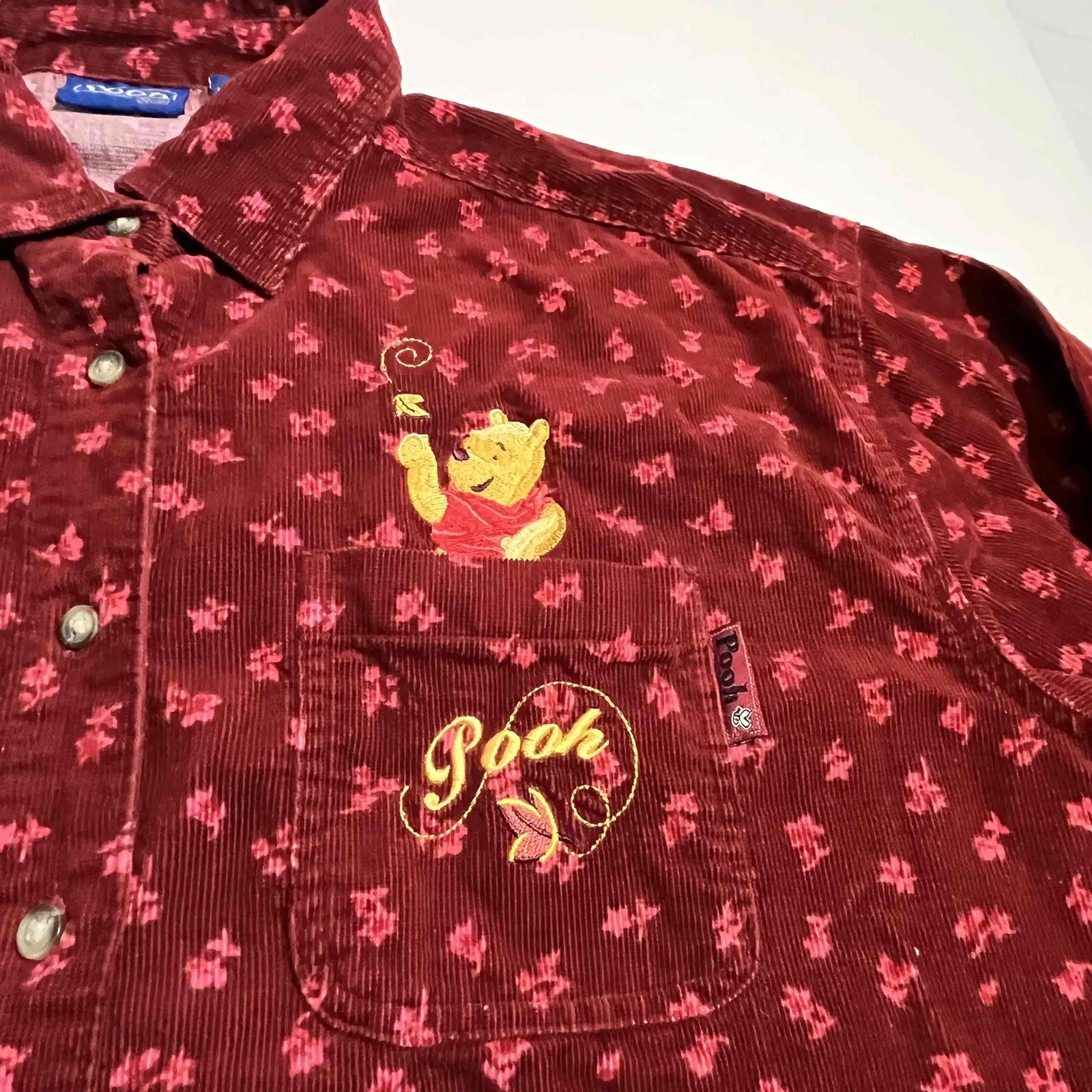 как выглядит Vintage Disney Winnie The Pooh Shirt 90s Corduroy Button Embroidered Long Sleeve фото
