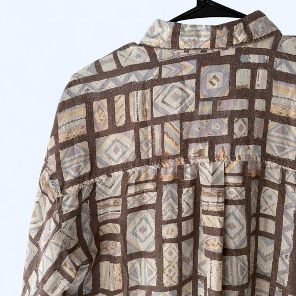 Gabicci Mens Geometric Print Long Sleeve Button Up Shirt Size Large Silk Blend
