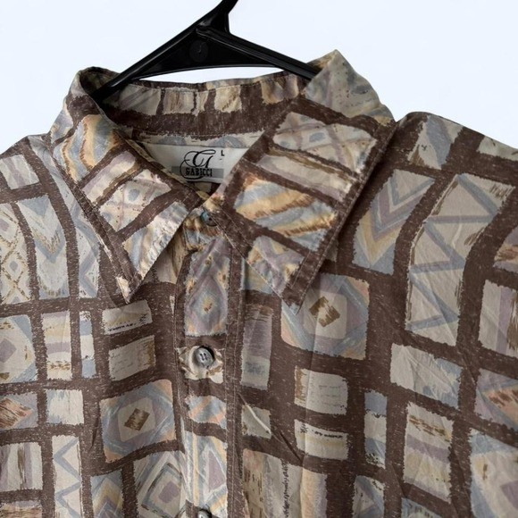как выглядит Gabicci Mens Geometric Print Long Sleeve Button Up Shirt Size Large Silk Blend фото