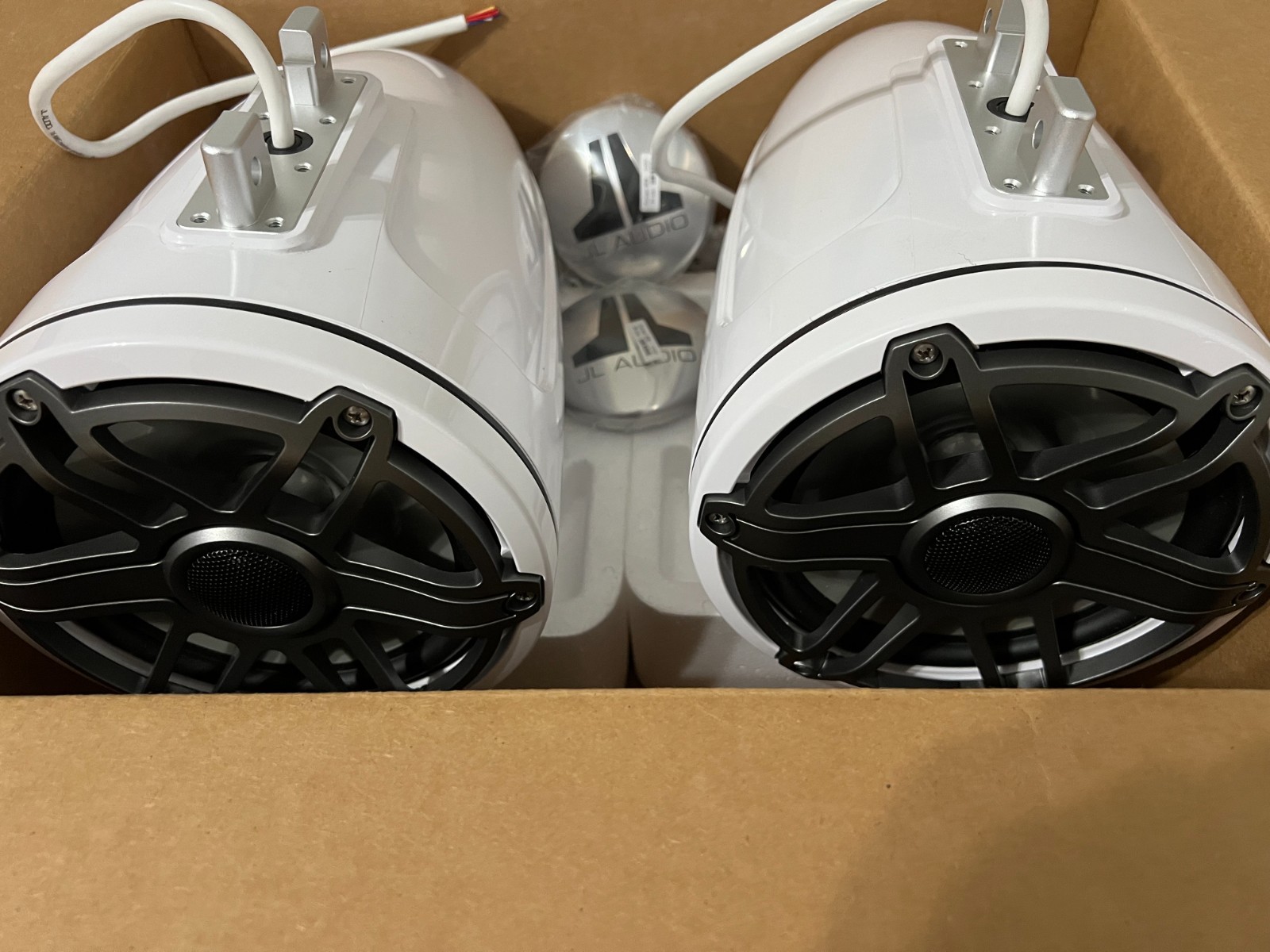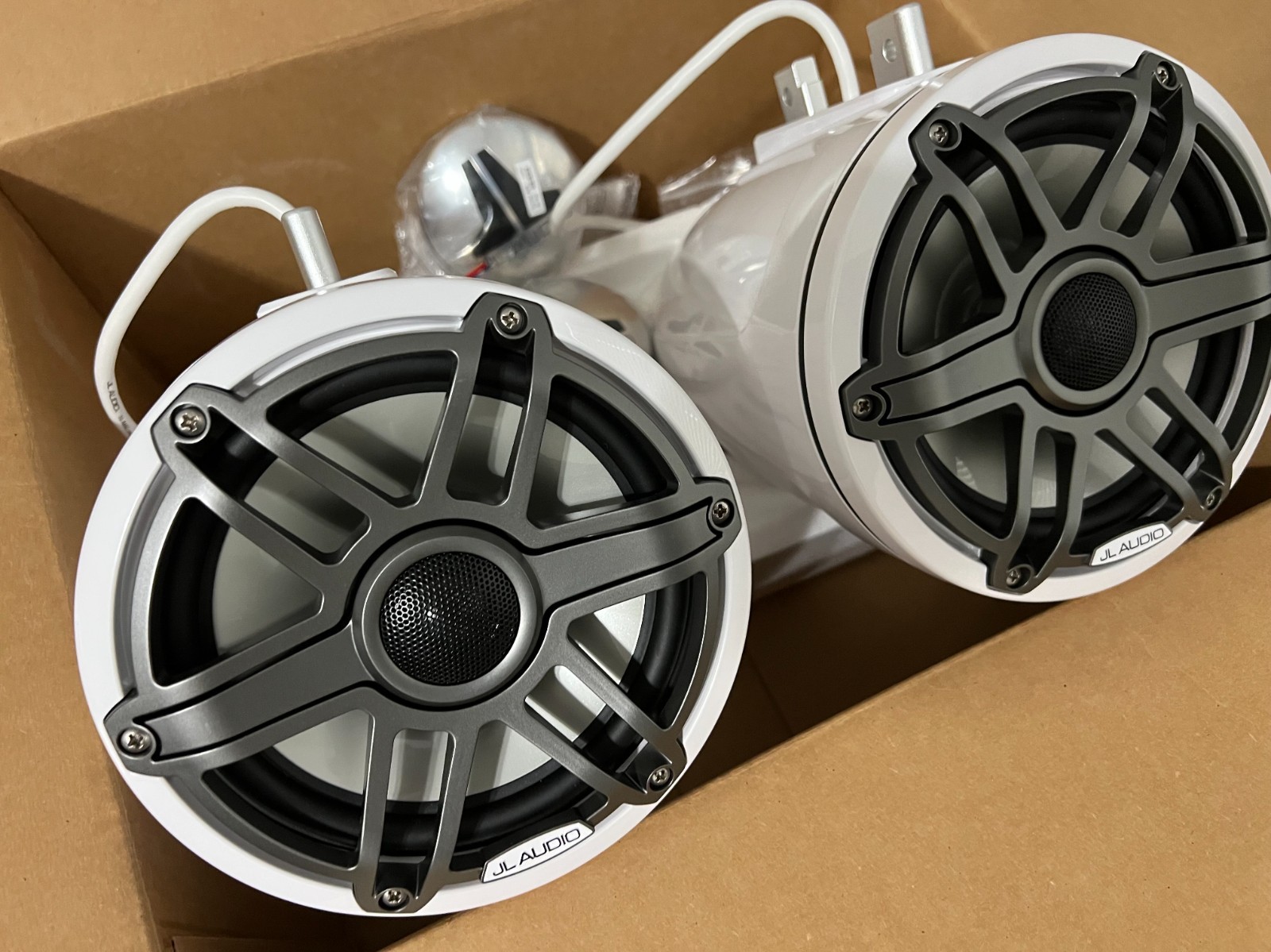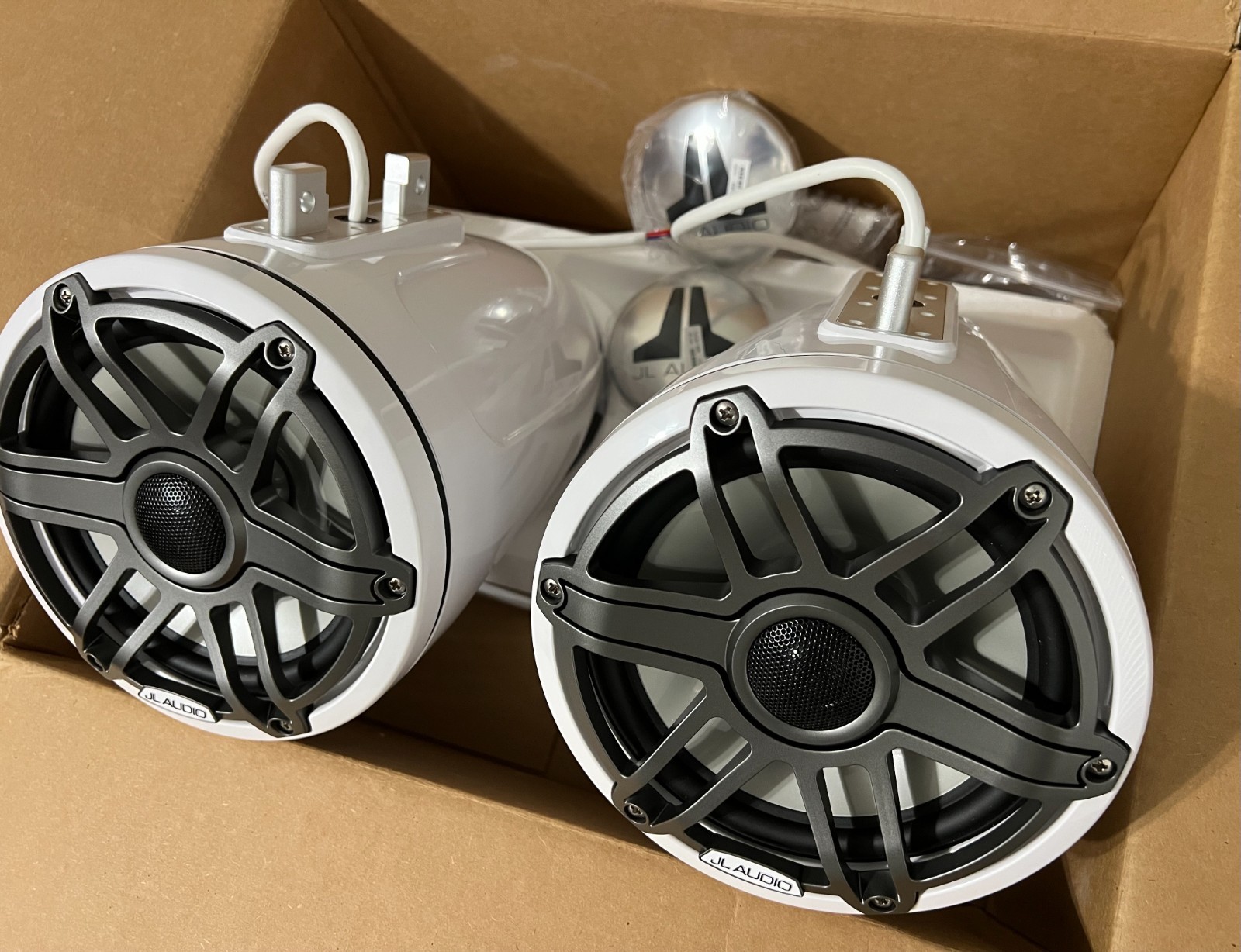 JL Audio M6 7.7 Enclosed Wake Tower Speakers Sport Grilles Pair w/o clamps