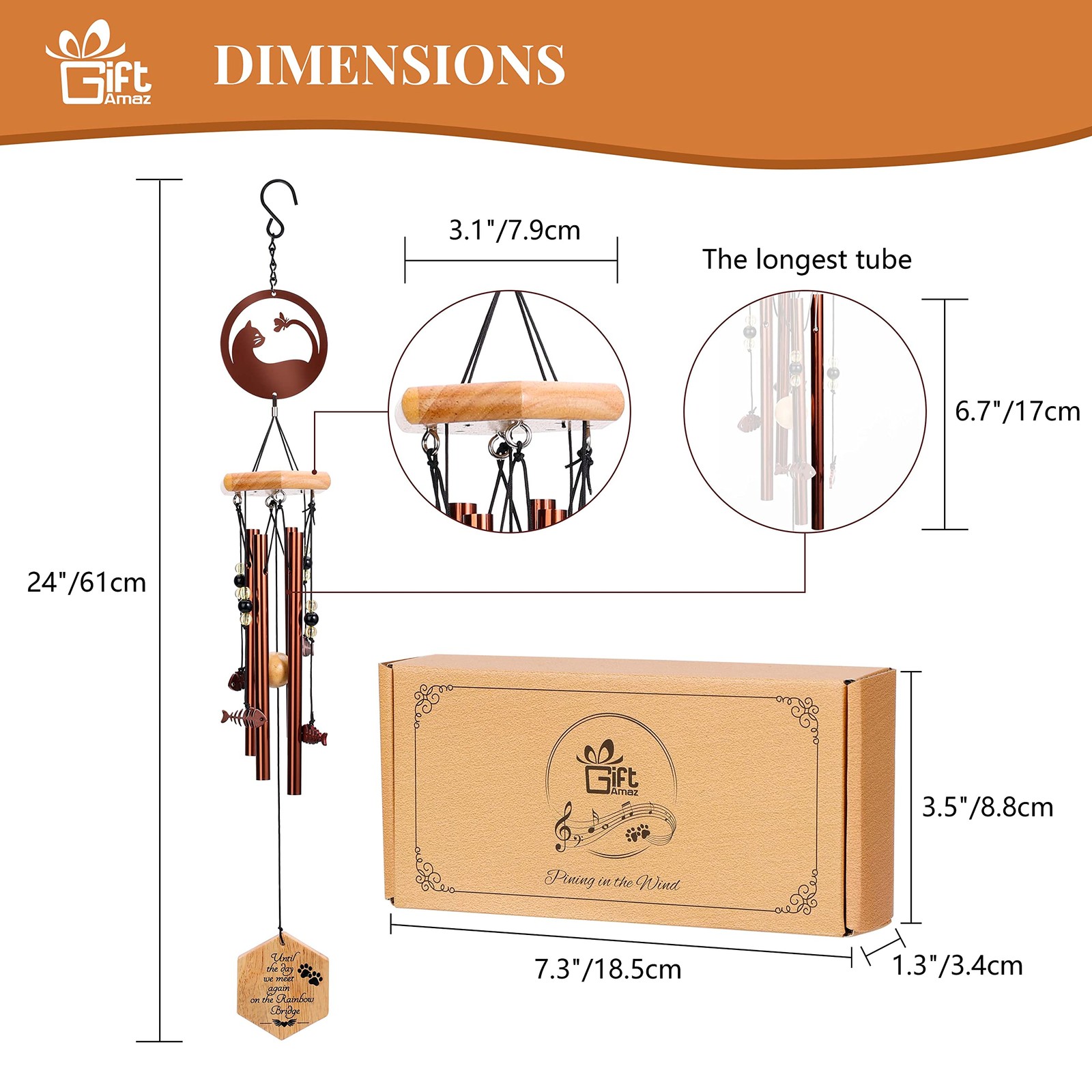 как выглядит Cat Memorial Wind Chime, 24 Inch Pet Sympathy Wind Chimes for Outdoor Garden Pat фото