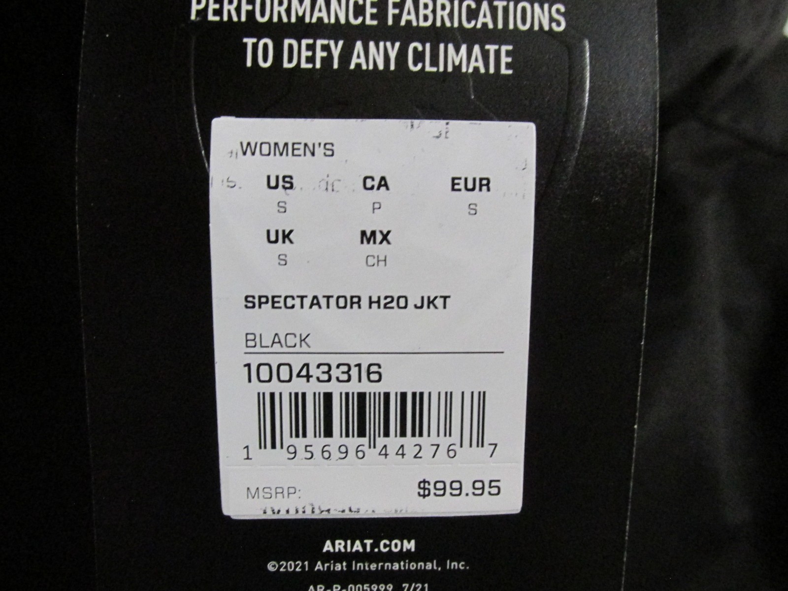 Women's Ariat Tek Equestrian Spectator H20 Waterproof Jacket Black Size SMALL