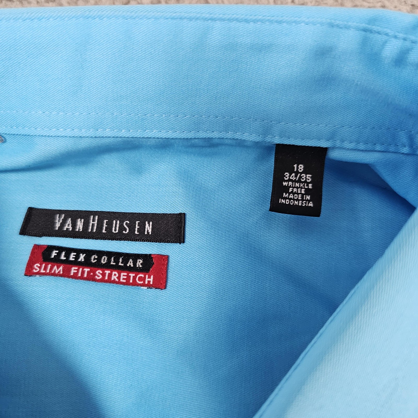 как выглядит Van Heusen Shirt Mens 18 34/35 Blue Slim Fit Flex Collar Wrinkle Free Stretch фото