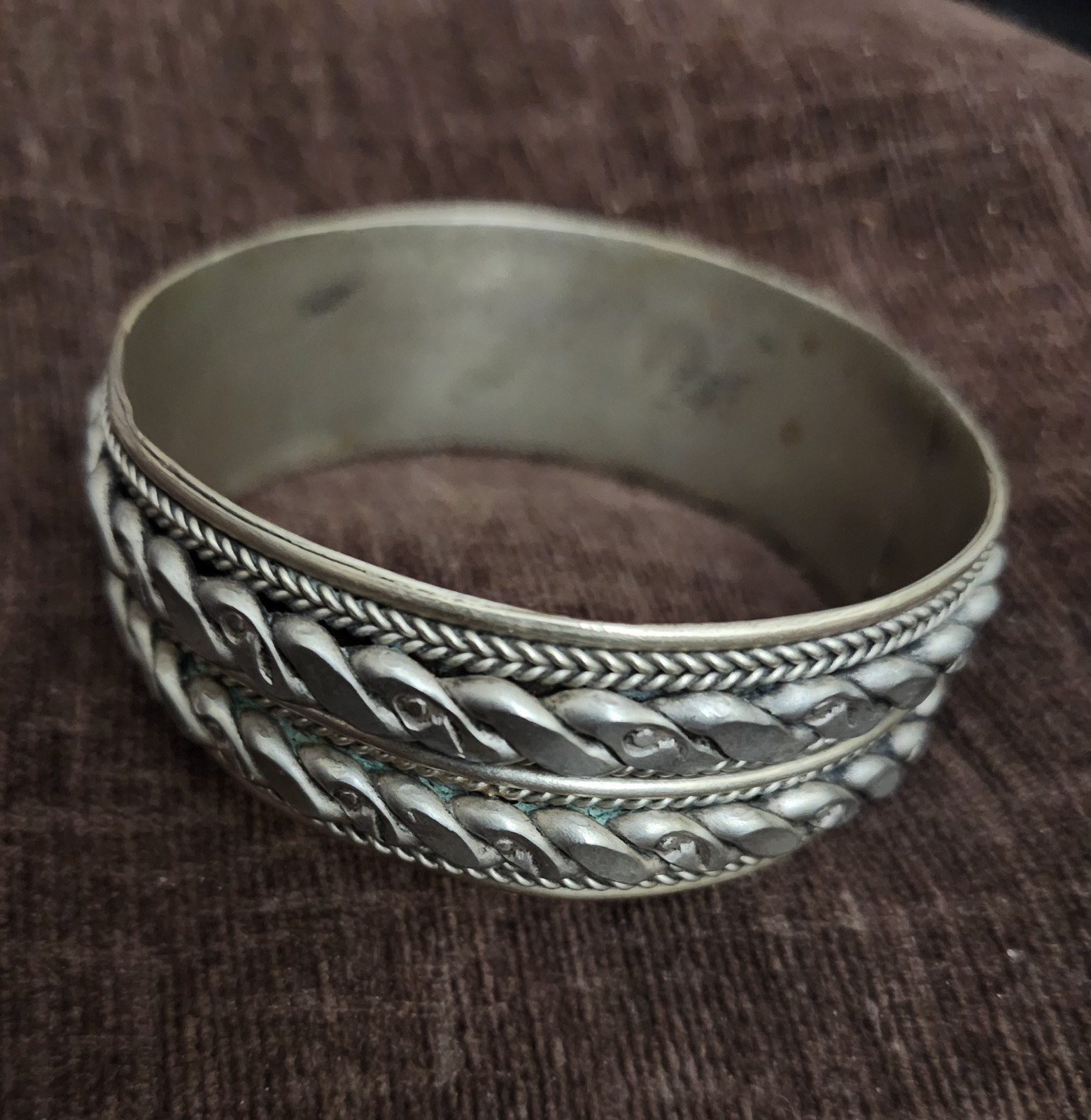 как выглядит Vintage/antique wide Berber Moroccan silvered brass bangle bracelet фото