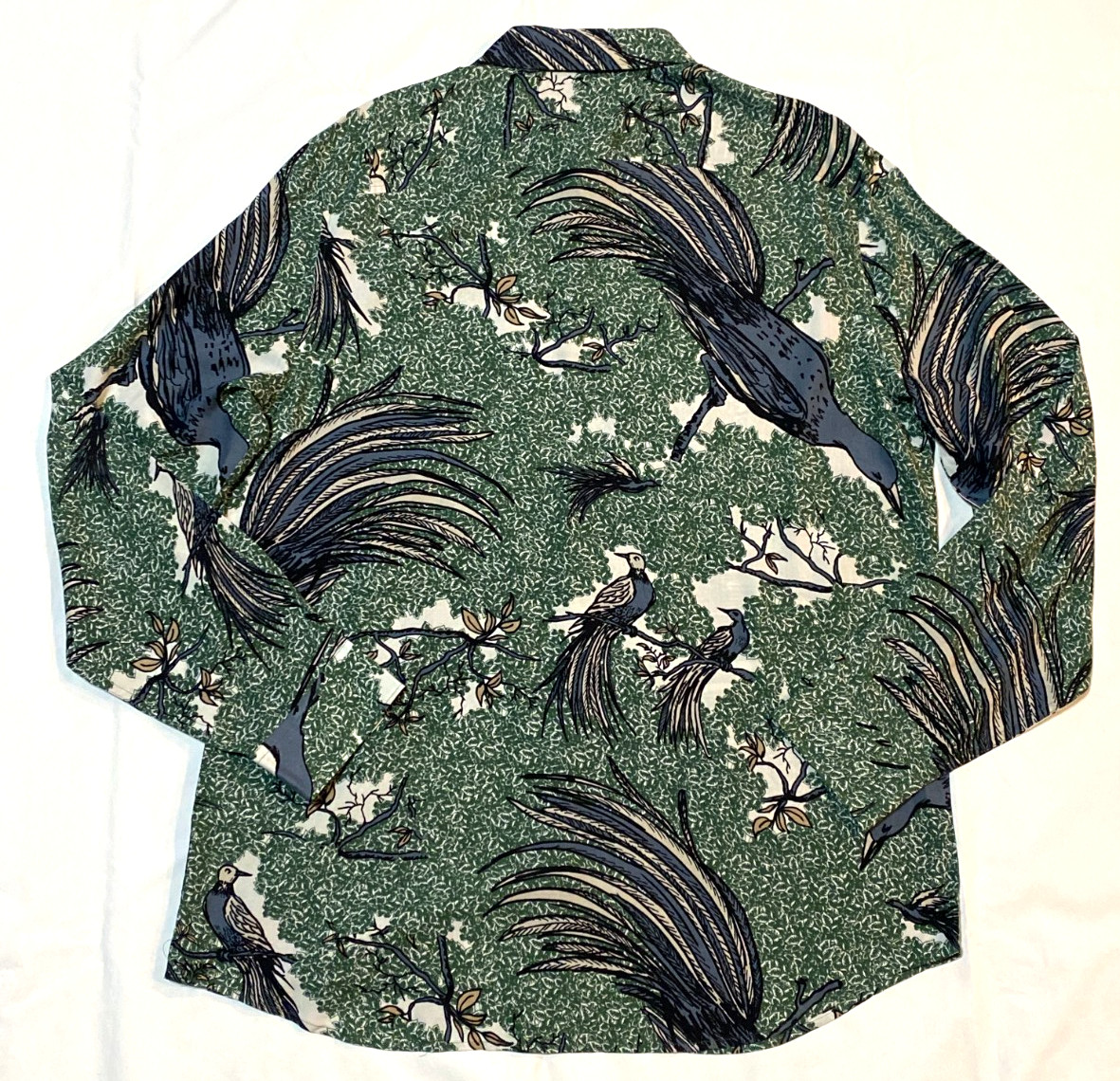 как выглядит New with tags-PERRY ELLIS bird print Mens Long sleeves Shirt- Green -Size-XLT фото