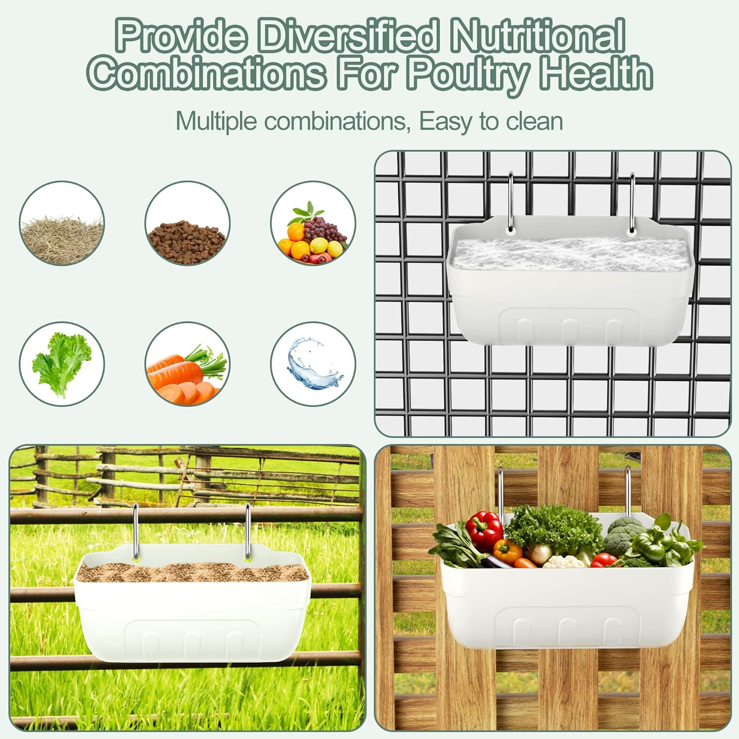Goat Feeders Hanging 3.5 Quart, Chicken Waterer Feeder Trough for Poultry Livest