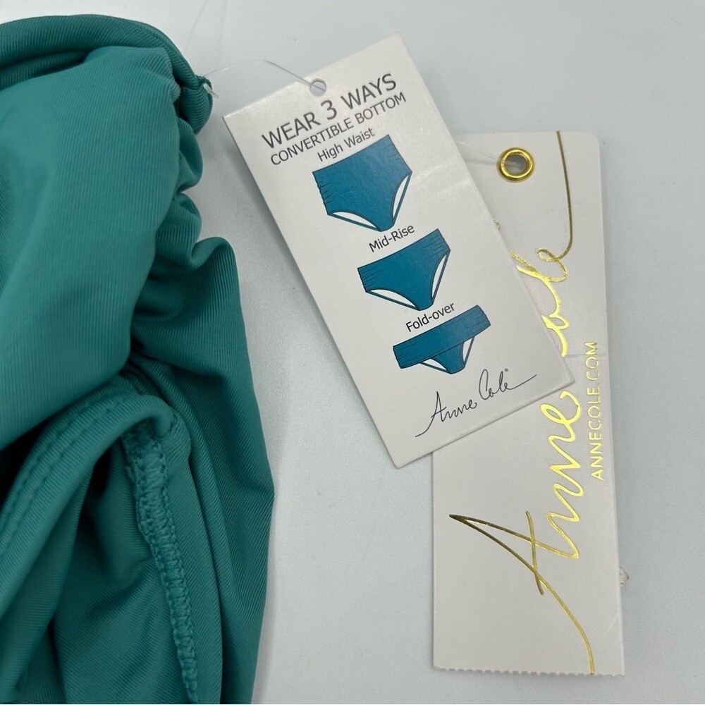 как выглядит Anne Cole Womens Side Shirred High Waist Bikini Bottom Ocean Green NWT Medium фото