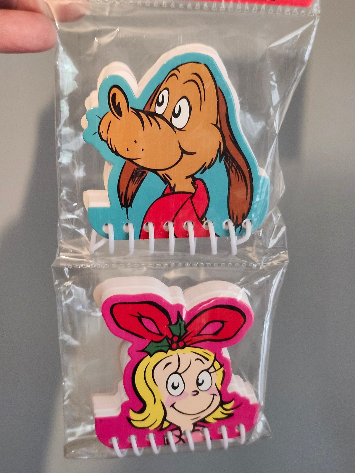 NEW Dr. Seuss GRINCH 2 Die Cut Spiral Notepads w/80 pages, Max Cindy Lou Who