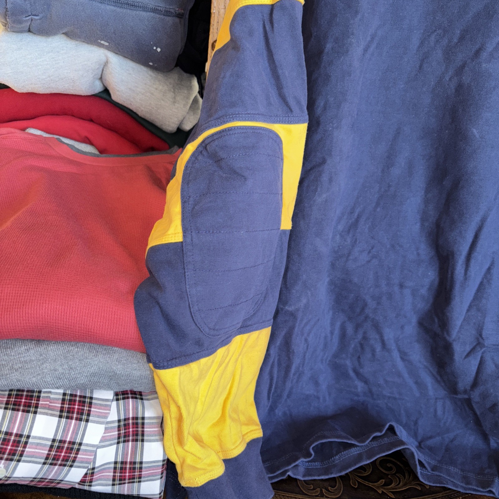 как выглядит Orvis Rugby Sweatshirt Mens XL Striped Navy Blue YELLOW Elbow Patch Long Sleeve фото
