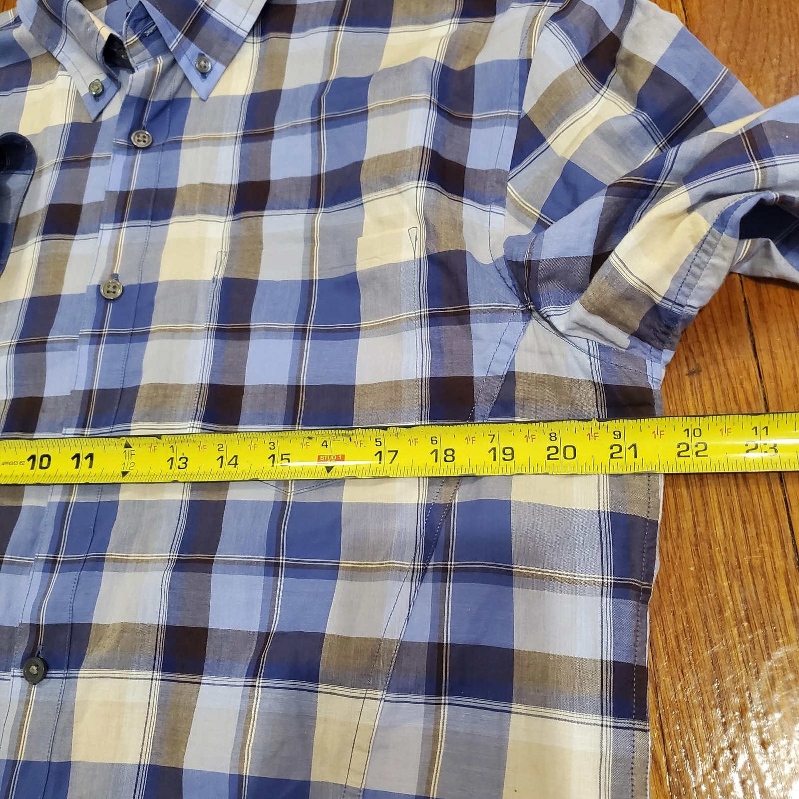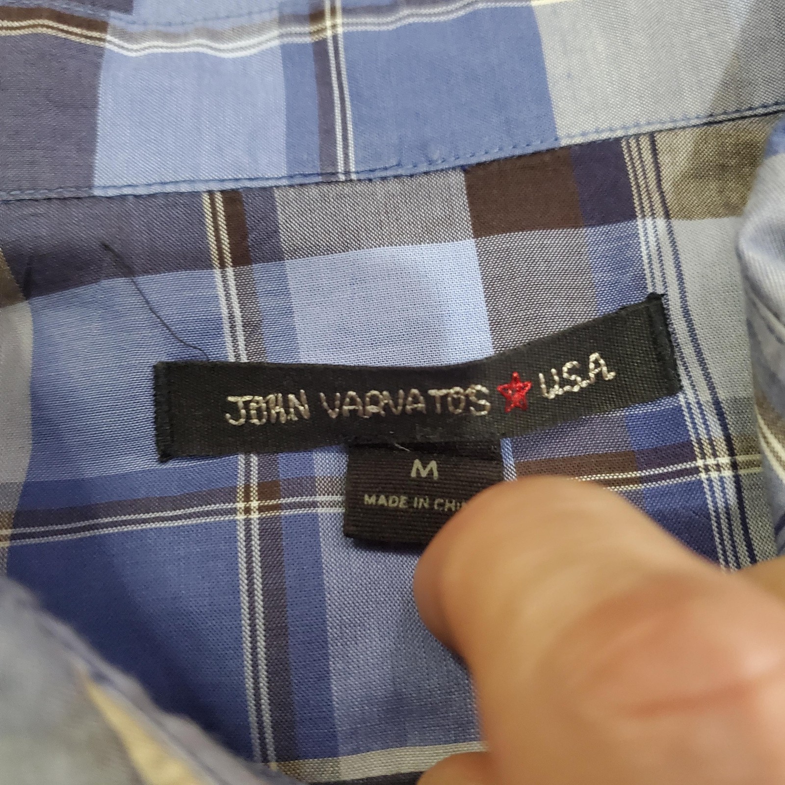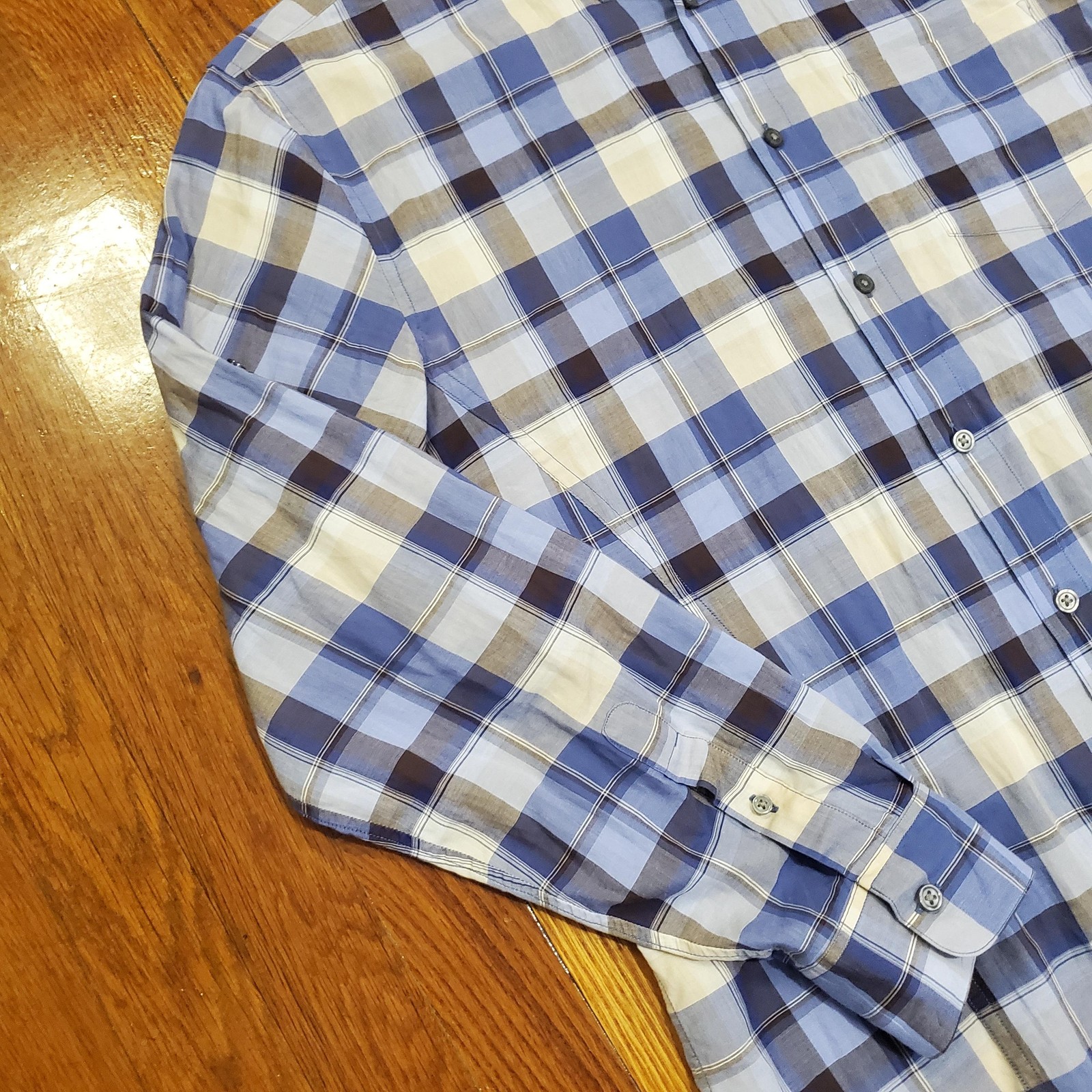 как выглядит John Varvatos Shirt Mens Medium Blue White Plaid Button Down Long Sleeve Casual фото