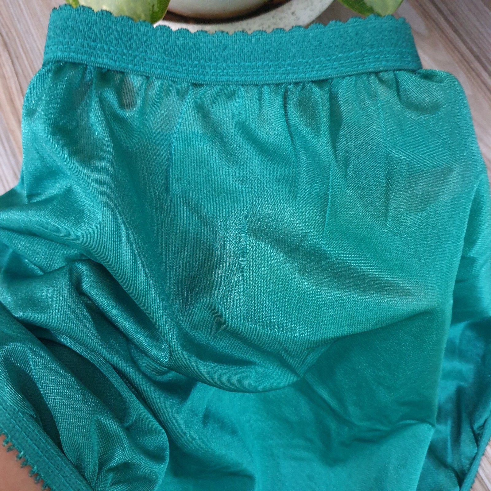 как выглядит VTG Silky Nylon Panty Sissy Green Lace Granny Sheer Brief Size 9-10 Hip 45-48" фото