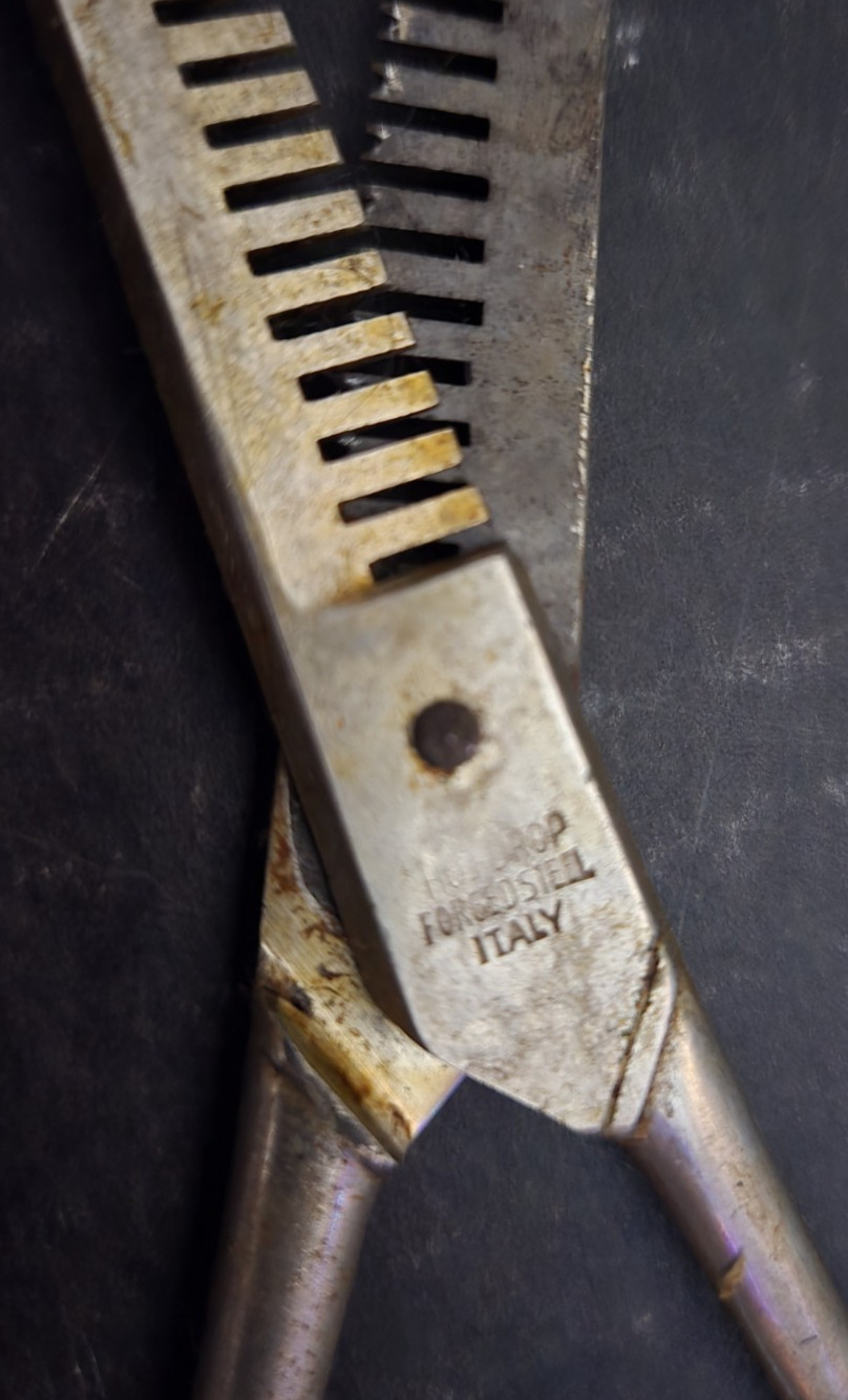 Vintage Barber Thinning Shears Hot Drop Forged Steel Italy 7 Inch Hair Scissors