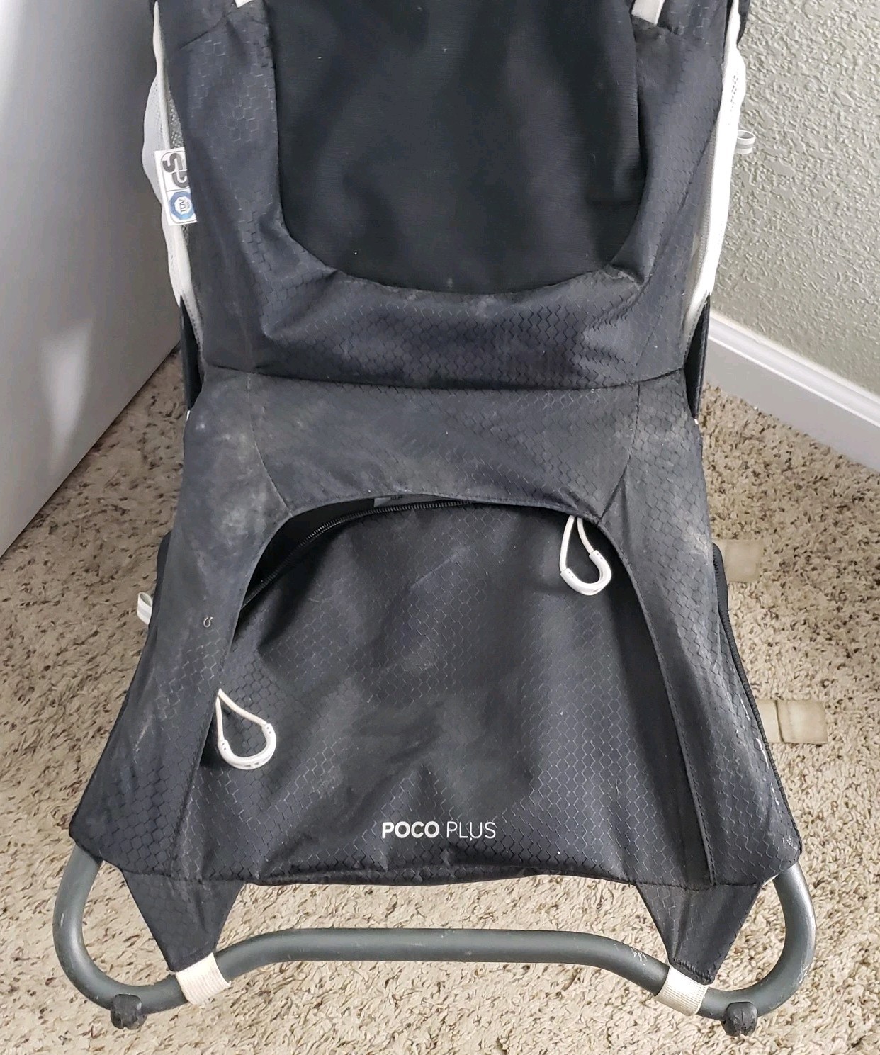 OSPREY Poco Plus Hiking Backpack Child Carrier Black/Gray Lime Green Rain Cover